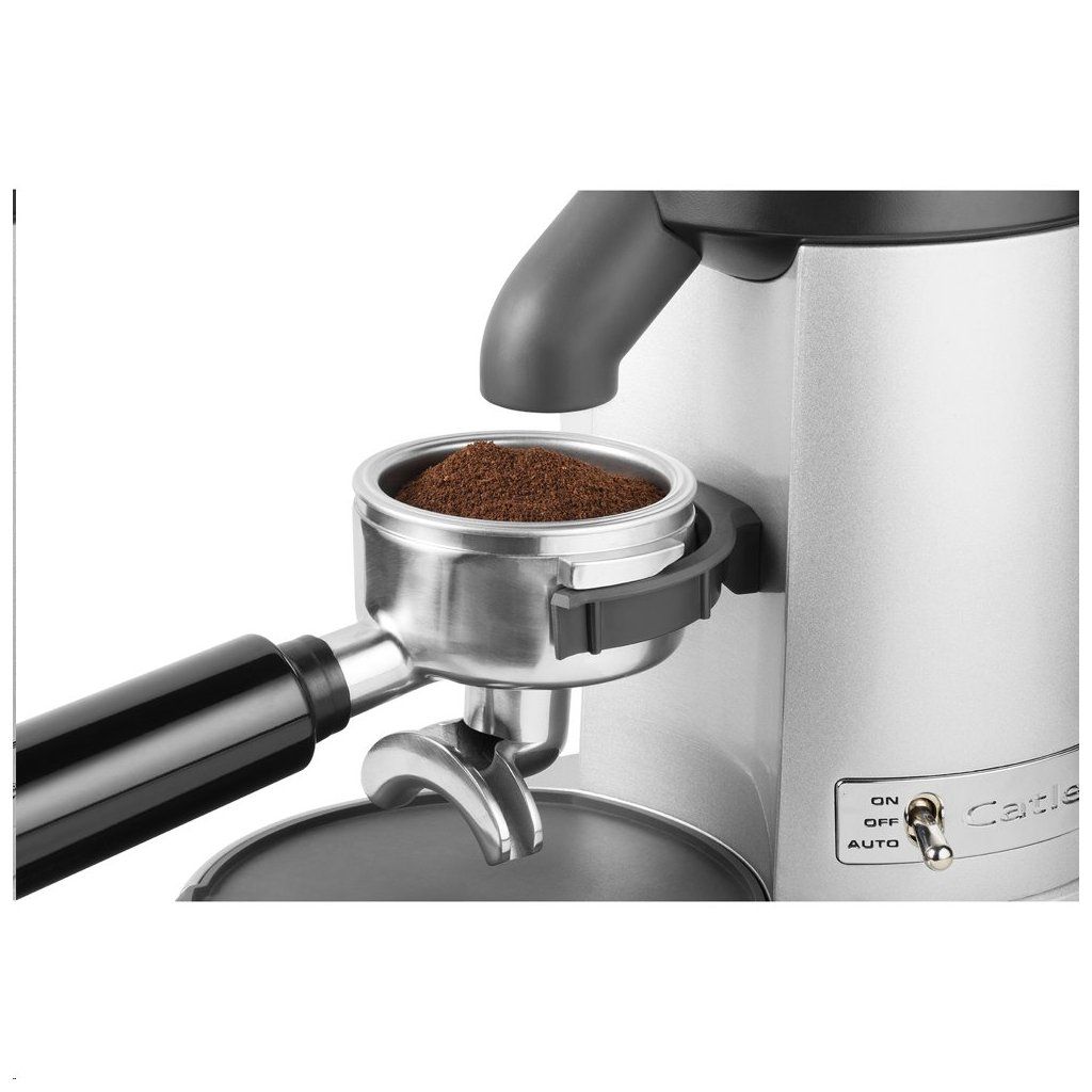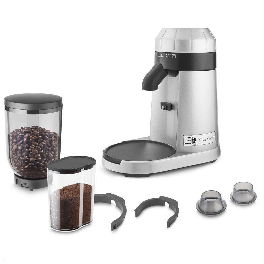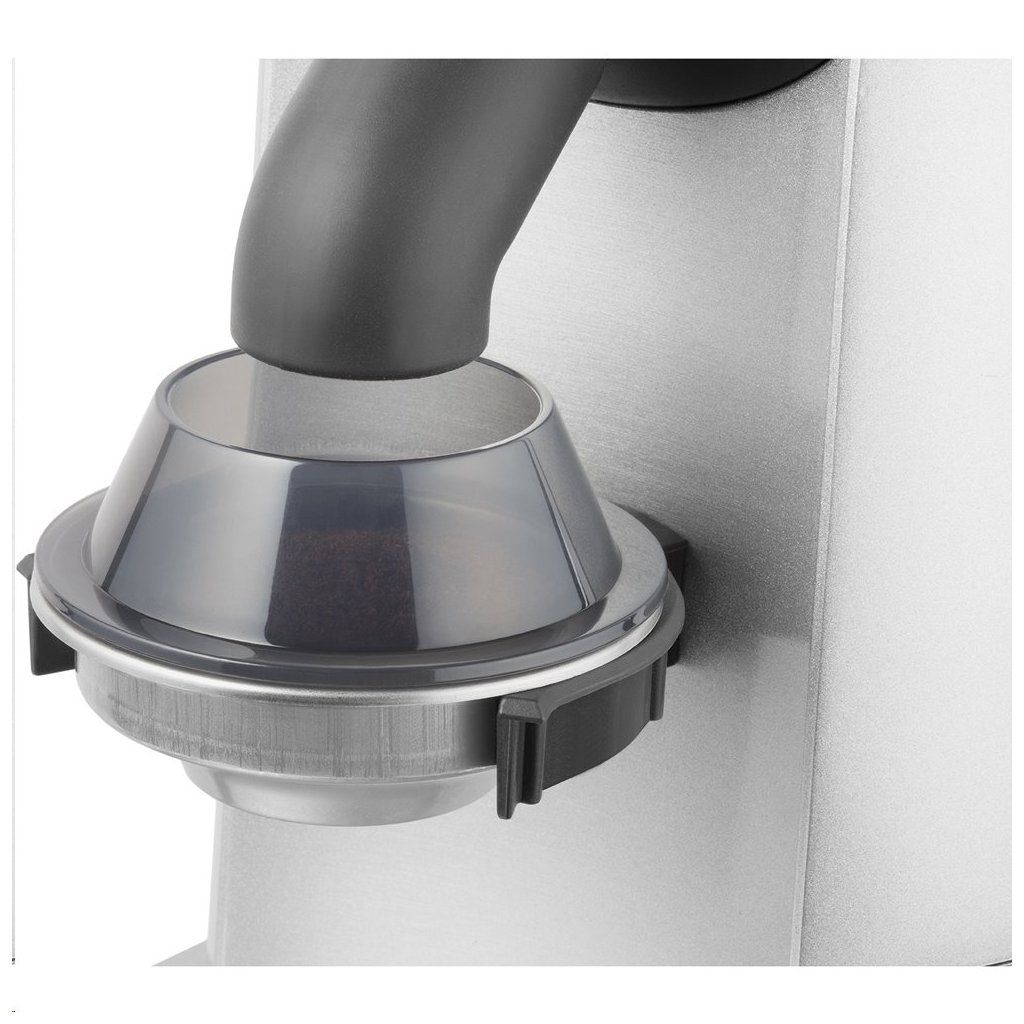 Profesionální mlýnek na kávu Catler je vybaven 2 držáky pro různé velikosti pák a nádobu na umletou kávu.