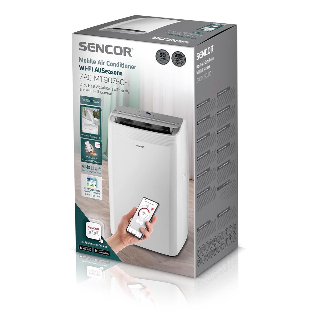 Objevte mobilní klimatizaci Sencor SAC MT9078CH, která představuje dokonalé řešení pro celoroční klimatizaci vašeho domova či kanceláře. Tato Wi-Fi klimatizace nabízí výjimečnou energetickou účinnost s třídou A++ pro chlazení a A+++ pro topení, což z ní činí jednu z nejúspornějších mobilních klimatizací na trhu.