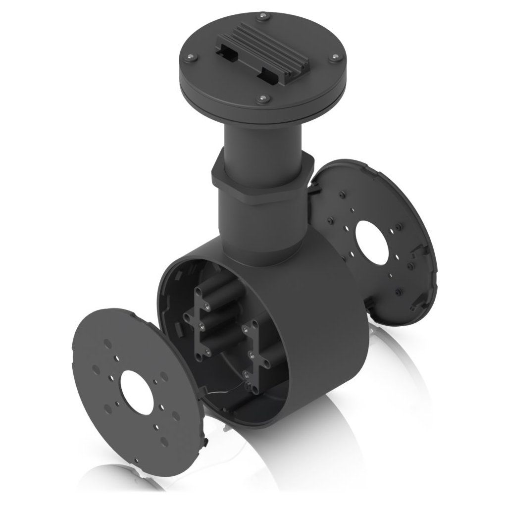 Ubiquiti Camera Dual Mount BlackDržák pro dvě kamery UniFi Bullet, Dome nebo Turret zády k sobě, odolný proti neoprávněné manipulaci. Umožňuje povrchovou, sloupovou i závěsnou montáž. Disponuje závitem 1 1/2" NPS a průměr upevnění na sloup je 1,5"–2" (krouticí moment kovového pásku: 6 Nm).