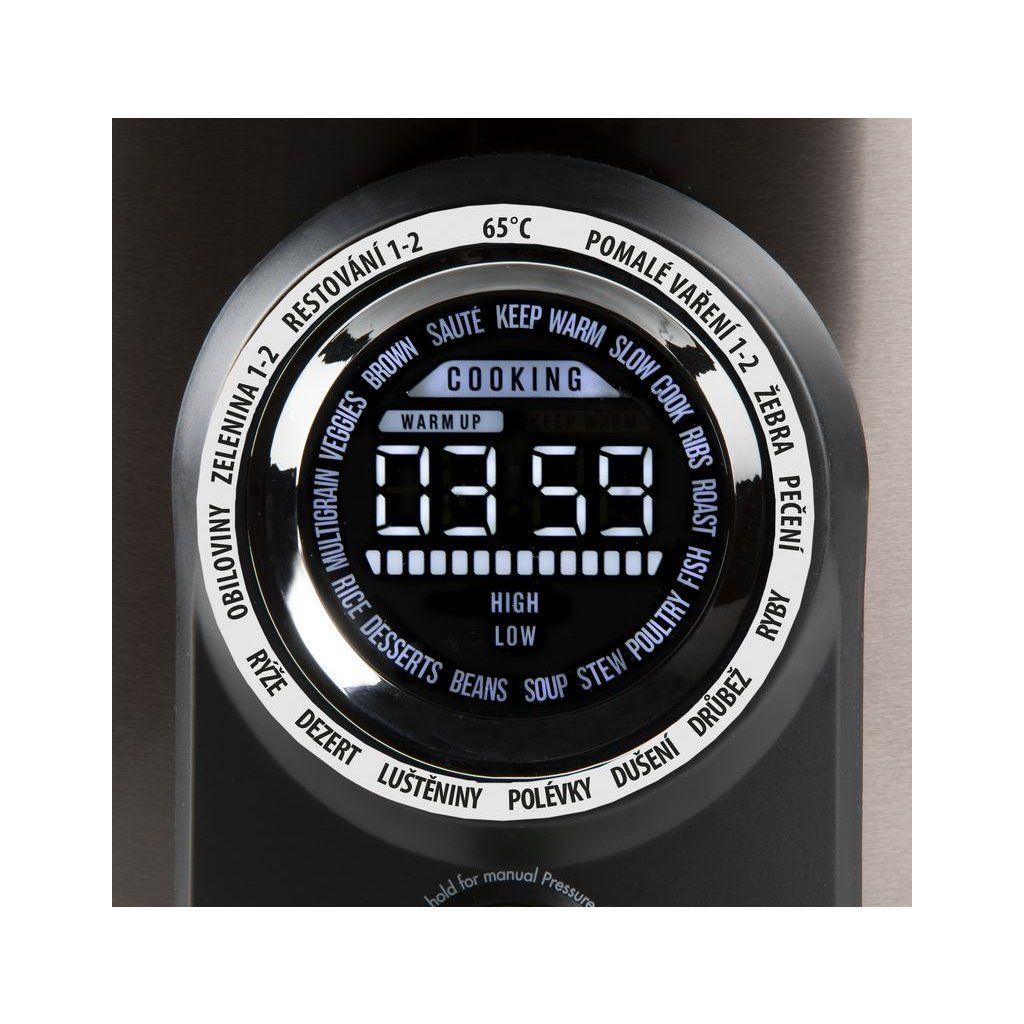 Multifunkční tlakový hrnec (papiňák) vám přináší nové možnosti vaření do vaší kuchyně a úsporu energií. Jednoduchým výběrem přednastaveného programu připravíte nejen perfektní maso, ale i rýži, nebo zeleninu v páře a to až o 70% rychleji než běžným způsobem. Pokud vám žádný z přednastavených programů nevyhovuje, lze si snadno nastavit svůj vlastní a to jak nastavením času, tak i nastavením požadovaného tlaku. Multifunkční hrnec umí také pracovat bez víka jako pánev na smažení a dovolí vám tak orestovat do základu pokrmu cibulku, nebo zatáhnout maso před delším dušením. Pro opravdové gurmány pak přijde vhod program pomalého vaření.