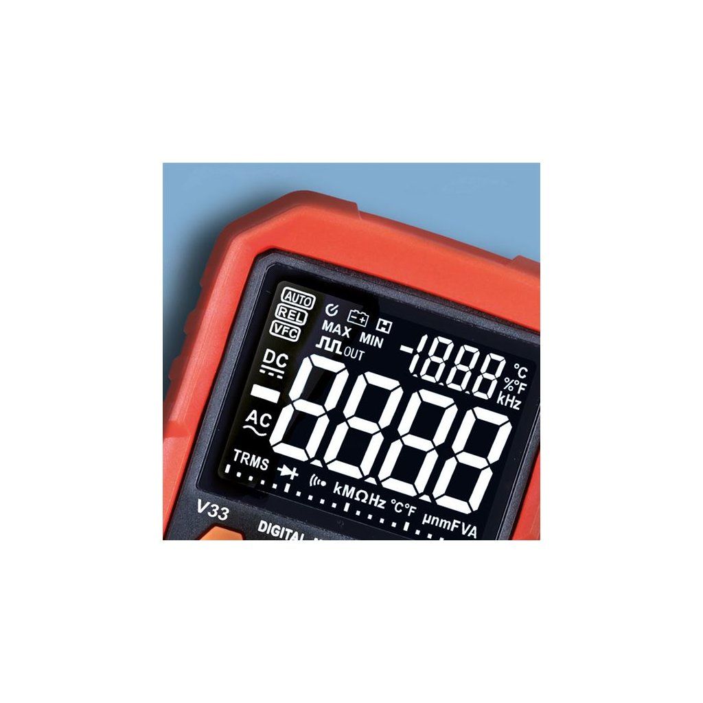 Přístroj nabízí široké možnosti měření včetně napětí, proudu, odporu, kapacity, frekvence a teploty. Magnetický držák umožňuje pohodlné umístění multimetru při práci bez nutnosti držet jej v ruce. Funkce NCV (bezkontaktní detekce napětí) v rozsahu 30 V až 1000 V zvyšuje bezpečnost práce tím, že upozorní na přítomnost napětí bez nutnosti přímého kontaktu s vodičem.