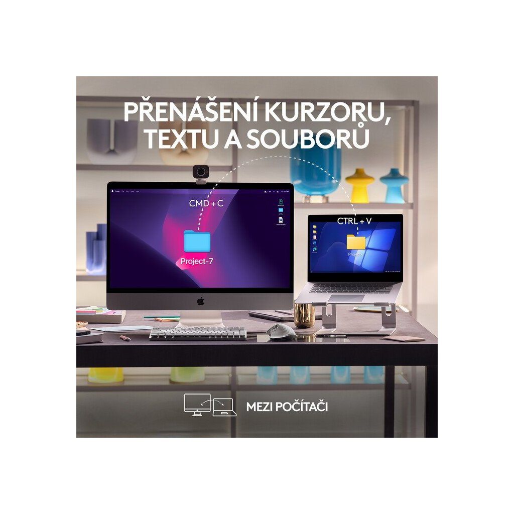 MX Master 3S For Mac hravě ovládá více počítačů Mac současně pouhým posunutím kurzoru k okraji obrazovky. To vše zajistí technologie Flow, která přenáší text, obrázky a soubory mezi počítači. Stačí jeden klik na úlohu kopírovat na jednom PC a vložit na druhém.