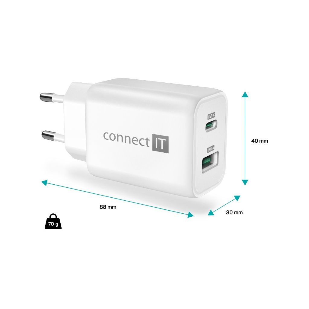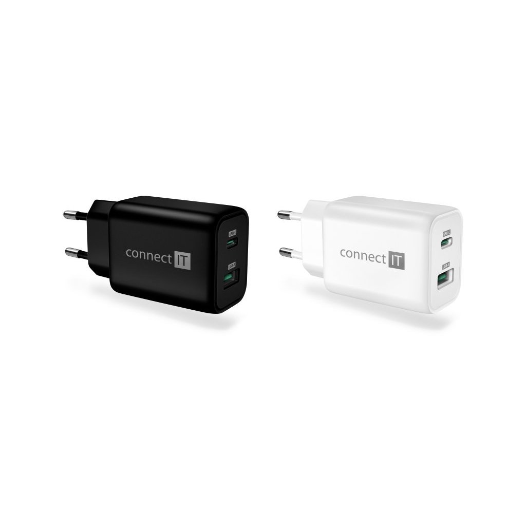 CONNECT IT Wanderer2 GaN nabíjecí adaptér 1×USB-C + 1xUSB-A, 33W PD, BÍLÝ
