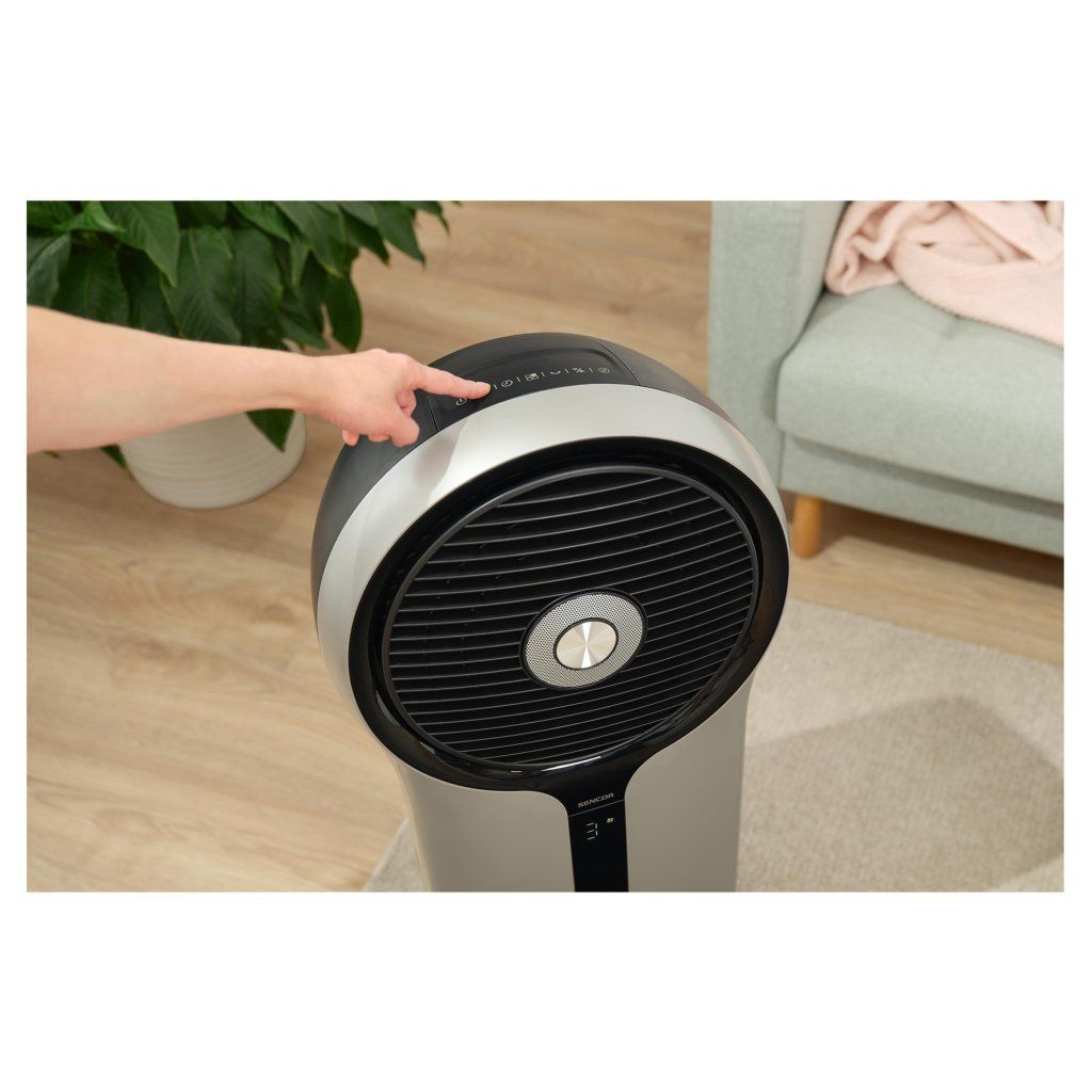 Ochlazovač vzduchu SFN 9014SL má výrazný a nezaměnitelný design, přesto je elegantní a nerušivý. Podobně jako jeho populární předchůdce SFN 9011SL. Tento model je však ještě modernější a technicky vyspělejší. Nabízí 3 funkce v jednom: výkonný ochlazovač, zvlhčovač a ventilátor. Je vybaven vodní nádrží s kapacitou 5,5 litru. Ochlazovač zařídí vaše letní osvěžení tak, jak si sami nastavíte. Ve 3 režimech a se 3 rychlostmi proudění vzduchu. K dispozici je pohodlné dálkové ovládání a časovač s nastavením až na 9 hodin.