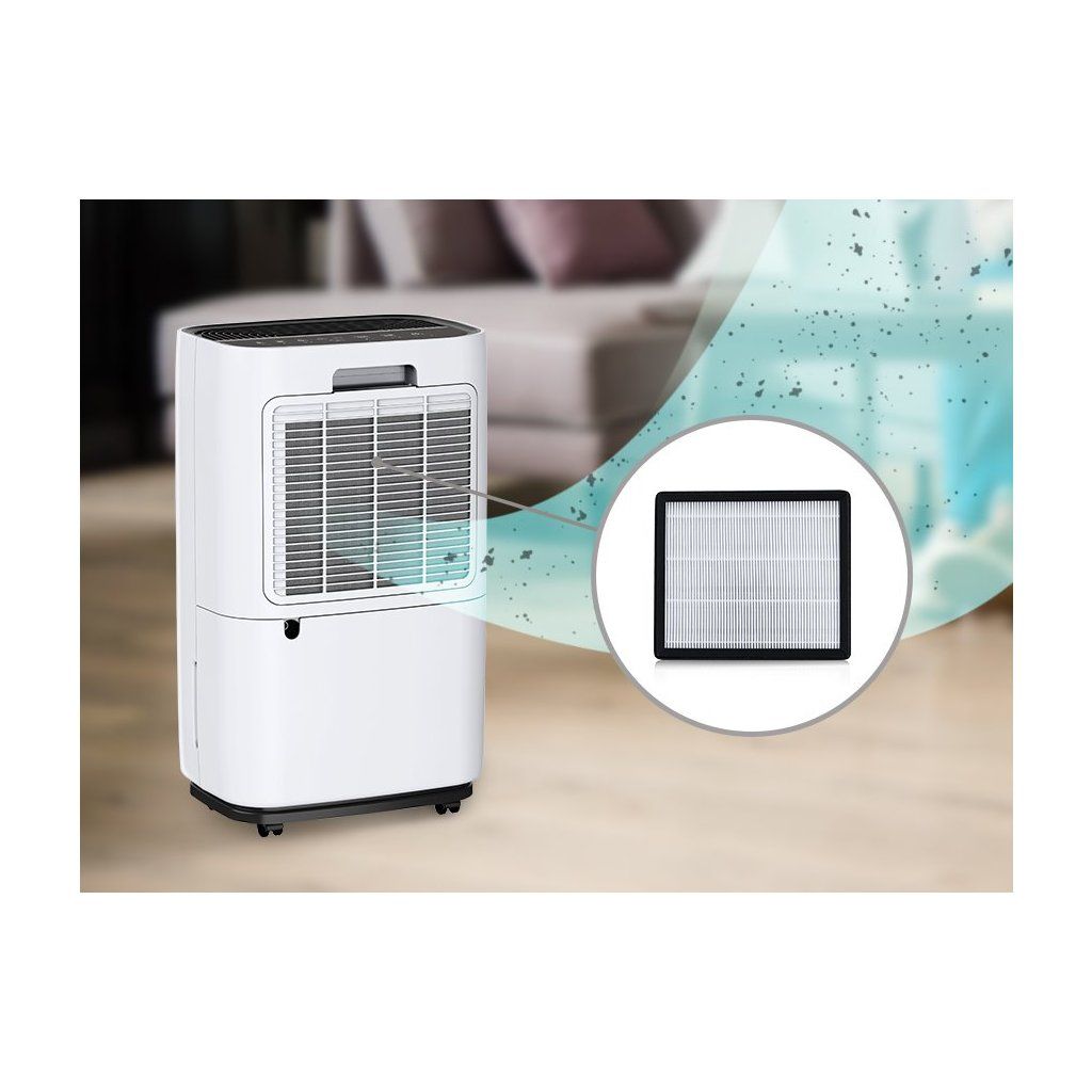 Odvlhčovač DEHUM 1 je vysoušeč vzduchu, který dokáže odvlhčit a částečně vyčistit vzduch v místnosti. Jedná se o kompresorový typ vysoušeče vzduchu s HEPA filtrem, který účinně zachycuje prachové částice, kouř bakterie nebo pyl.