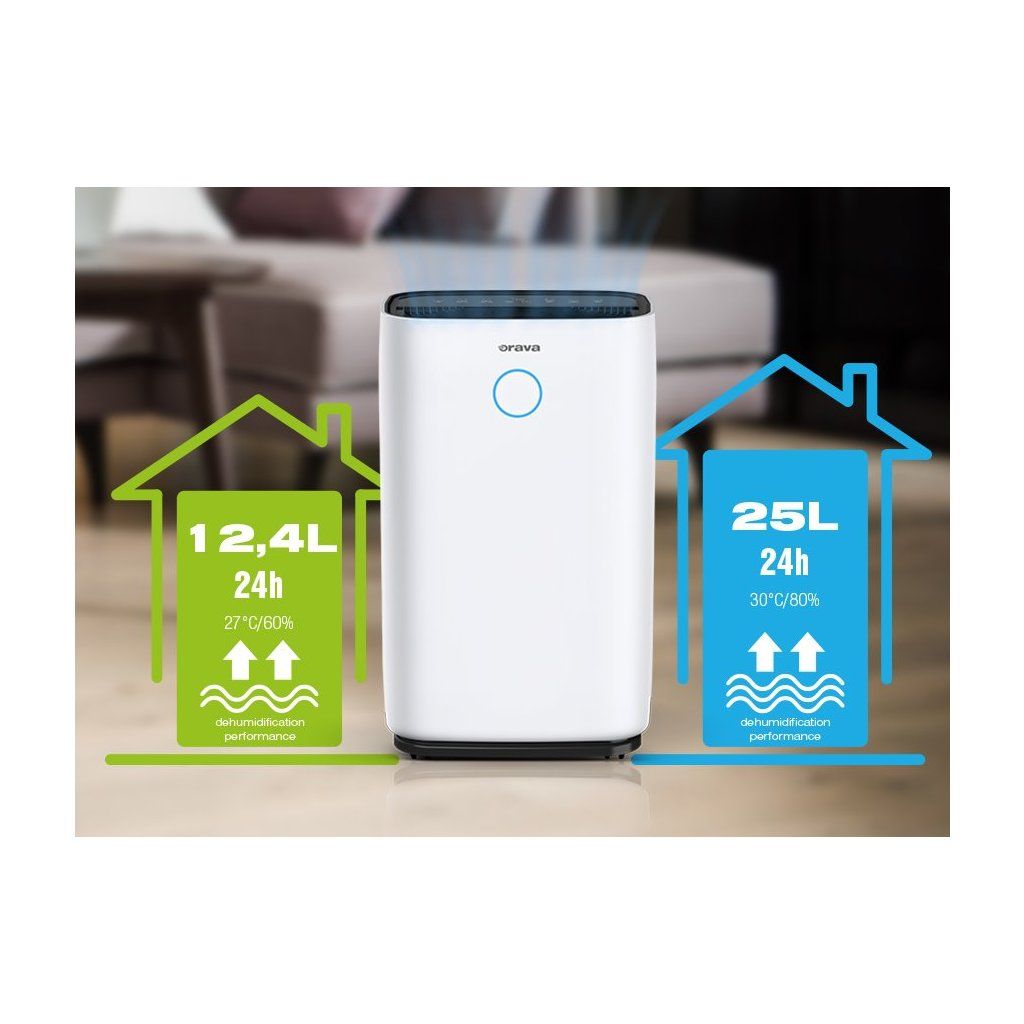 Se zvyšující se vlhkostí se v interiéru množí plísně, houby a bakterie, které poškozují naše zdraví i vzhled domu. Účinný odvlhčovač vzduchu Orava Dehum-1 odsaje ze vzduchu přebytečnou vlhkost a částečně vyčistí vzduch v místnosti od prachu, kouře, bakterií a pylu. Spolehlivě se postará o optimální vlhkost v bytě, domě i na chatě.