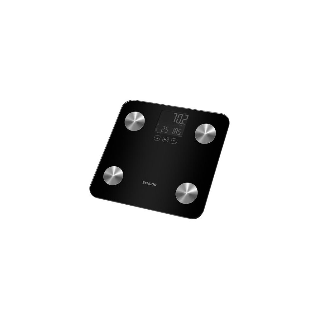 Osobní fitness váha Sencor SBS 6025WH S osobní fitness váhou velmi snadno získáte přehled o stavu svého těla. Váha zváží nejen hmotnost, ale změří a provede i analýzu tělesných parametrů. Váha se také jednoduše ovládá pomocí dotykových tlačítek a přehledného podsvíceného displeje. Váha zaujme také svým designem se skleněnou vážící plochou. Váha se tak perfektně hodí do jakékoliv místnosti, a navíc se snadno i udržuje. Měření tělesných parametrů: - Tělesný tuk % - Voda % - Svalovina % - Kosti % - BMI Paměť pro 12 uživatelů Tvrzené bezpečnostní sklo (6 mm) Kombinace skleněného a nerezového povrchu pro snadnou údržbu Velký LCD displej s podsvícením Dotykové ovládání Váživost do 180 kg (rozlišení 100 g) Funkce Auto-On (váží ihned po nastoupení na váhu) Funkce automatického rozpoznání uživatele Speciální mód pro aktivní sportovce Možnost volby jednotek (kg / lb / st:lb) Indikace slabé baterie a přetížení Automatické vypnutí při nečinnosti Technické specifikace Napájení 3× 1,5 V baterie typu AAA Váživost 180 kg / 400 lg / 28 st Přesnost vážení 100 g / 0,2 lg Volba jednotek hmotnost kg / lb / st Paměť až pro 12 osob Aplikace Ne Rozměry 30,2 × 30,2 × 2,3 cm Hmotnost Barva černáDoplňkové parametry
