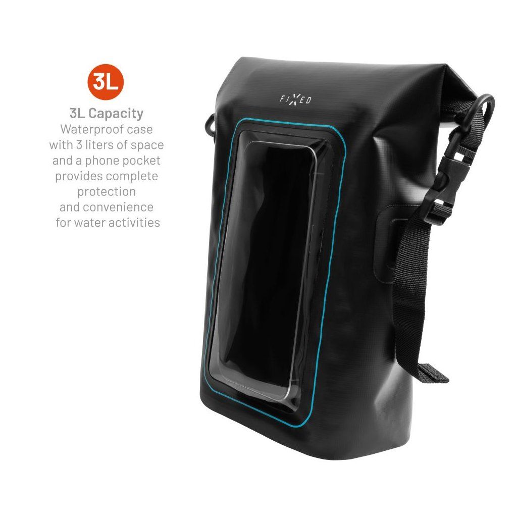 Fixed Voděodolný vak Float Bag s kapsou pro mobilní telefon 3L, černá