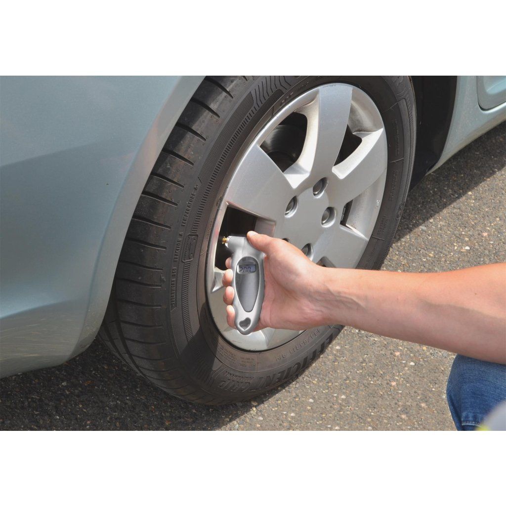 Digitální pneuměřič pro měření tlaku v pneumatikách automobilů. Volitelně zobrazení tlaku v jednotkách BAR, kPa, PSI, nebo kg/cm2 (Atm).