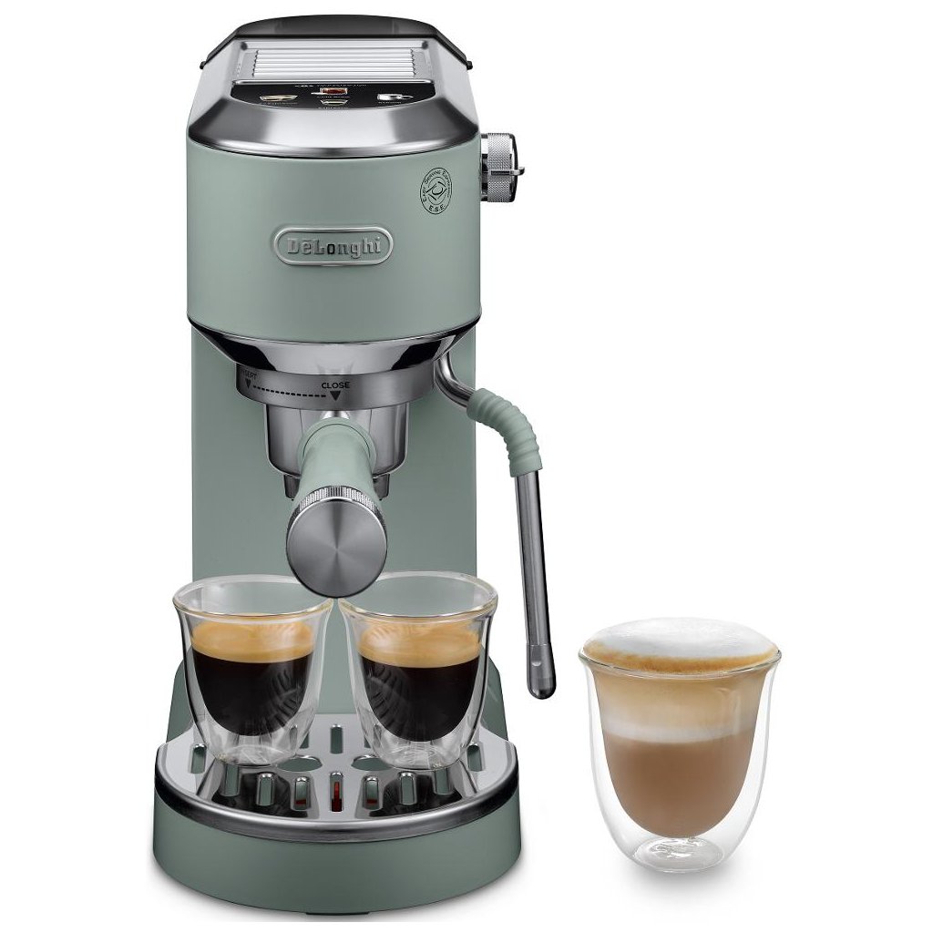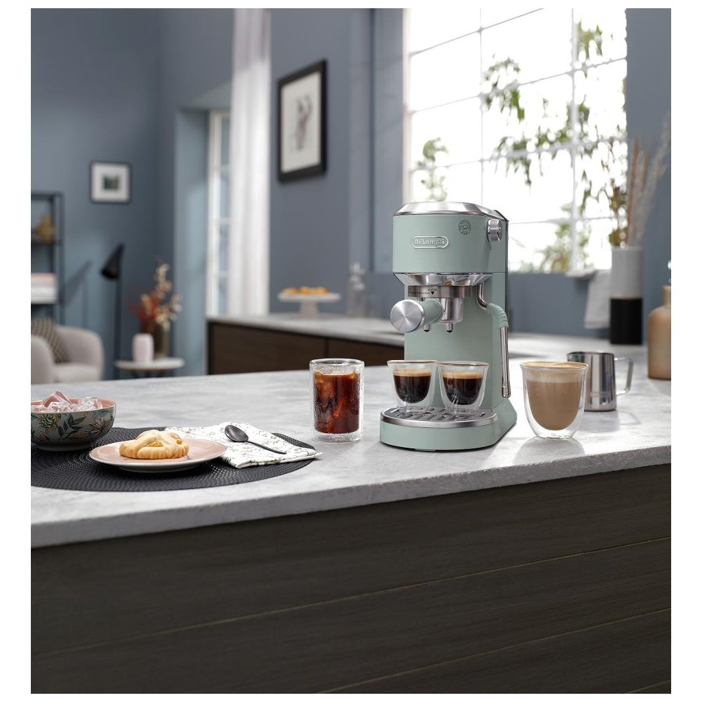 DE'LONGHI EC890.GR Dedica Duo je kompaktní pákový kávovar určený pro přípravu klasického espressa i mléčných specialit. Díky úzkému celokovovému provedení a rychlému nahřívání nabízí praktické řešení pro domácnosti či menší kanceláře, kde je důležitá kvalita kávy při omezeném prostoru.