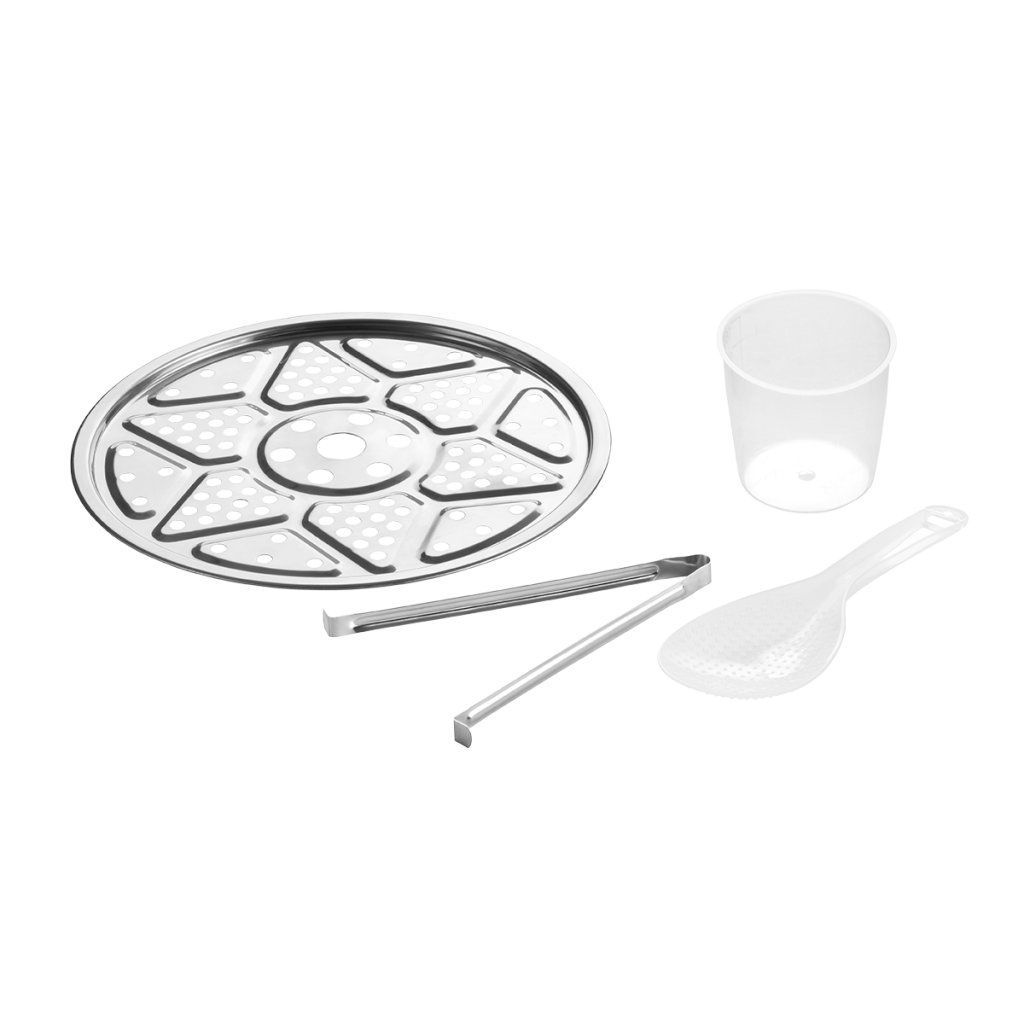 V páře můžete připravit téměř cokoliv – zeleninu, maso, rýži, brambory, luštěniny, knedlíky a plno dalších potravin vč. jejich ohřívání. Pára neničí vitamíny a důležité živiny a zachovává přirozenou chuť potravin. Během přípravy nemusíte používat žádný tuk ani olej. Jídlo se tak stává zdravějším a zároveň i chutnějším. K vaření v páře slouží napařovací koš, který lehce umístíte do speciálních prolisů uvnitř nádoby. Nepotřebujete tedy žádný stojánek, což je velmi praktické a úsporné na skladování.