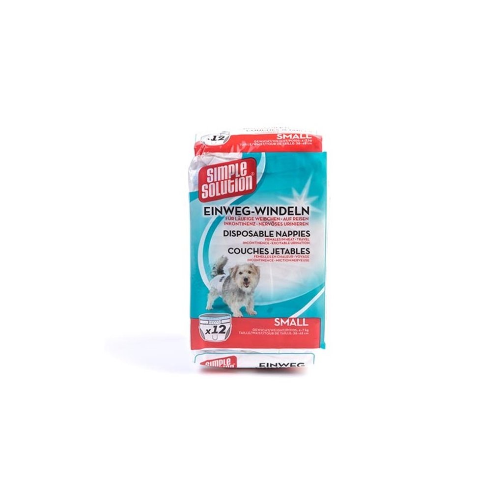 Jednorázové pleny od Simple Solution jsou vyrobeny z buničiny a obsahují super absorpční polymer, který přispívá k rychlému vstřebání tekutin a udržuje pokožku v suchu. Každá plena má díru na ocas a regulovatelný obvod pasu pro jednoduché a pohodlné nošení. Štíhlý design vyhovuje pohybu psa, zatímco dvojitá bariéra zabraňuje únikům a poskytuje pohodlí.