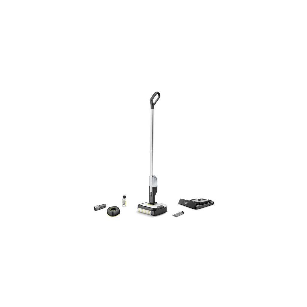 Podlahová myčka FC 2-4 je skvělým pomocníkem při úklidu díky své samonosné konstrukci a lehké váze pouhých 2,2 kg. Díky automatickému zapínání a vypínání je ovládání velmi intuitivní – stačí jednoduše zatáhnout za rukojeť čističe směrem dozadu a myčka se sama spustí. V jediném kroku pak snadno odstraní suché i mokré každodenní nečistoty. Baterie vystačí až 20 minut čištění, což je dostačující pro úklid plochy o rozloze cca 70 m2. Válec myčky se po aktivaci automaticky navlhčí vodou z nádrže na čerstvou vodu, což zajišťuje rovnoměrné a efektivní čištění tvrdých podlah vždy čistou vodou. Myčka umožňuje čištění až po okraj a díky integrovaným vlasovým filtrům lze snadno sbírat i vlasy a další nečistoty. Integrovaná hygienická nádrž na špinavou vodu zamezuje kontaktu s nečistotami a po použití ji lze snadno vyjmout a vyčistit. Přiložená výměnná baterie 4V od Kärcher Battery Power je kompatibilní se všemi 4V zařízeními této značky.