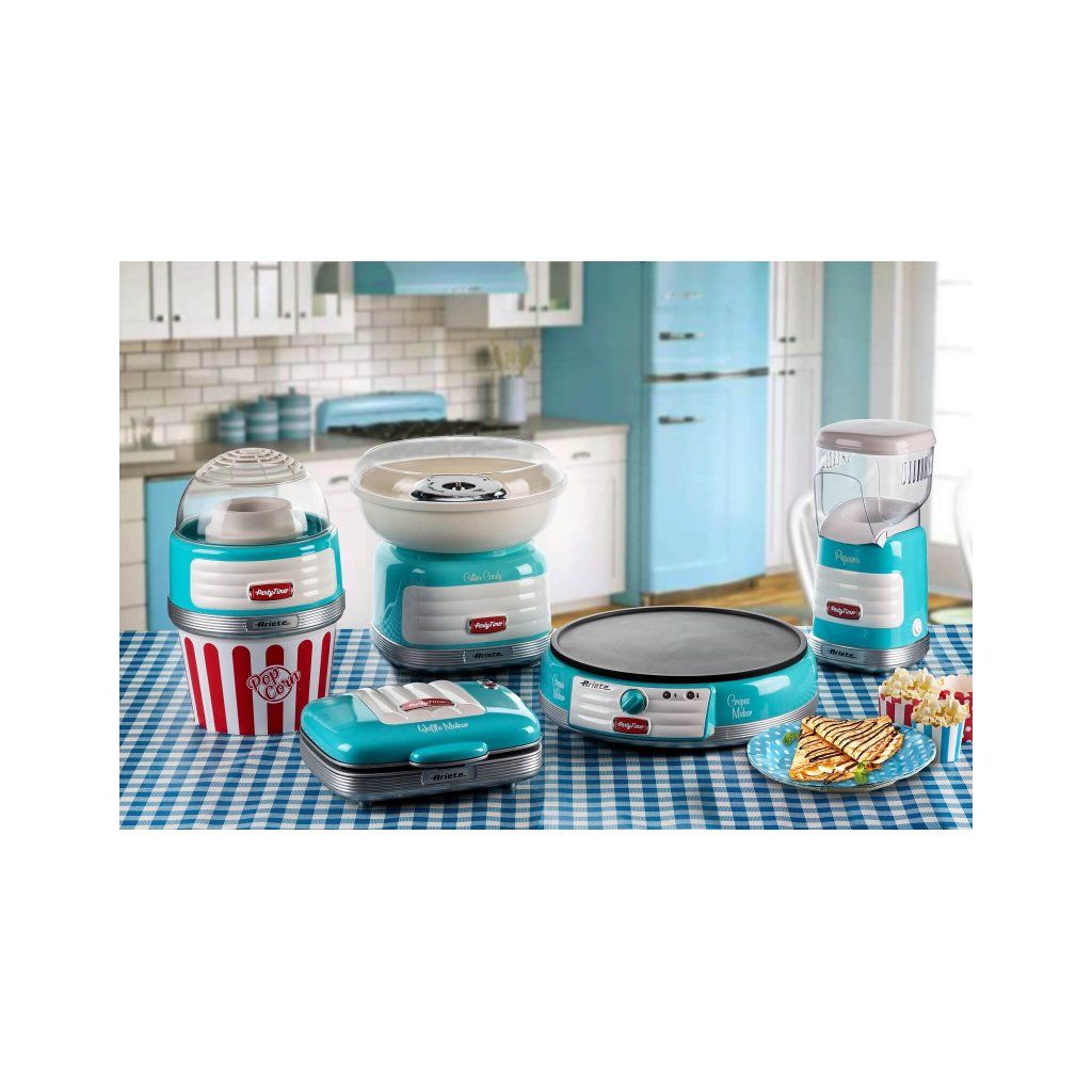 XL popcornovač Party Time patří do série spotřebičů inspirované designem amerických 50. let. Hravé barvy, oblé linie a klasické prvky přitáhnou pozornost a vytvoří nezapomenutelný zážitek. Pusťte uzdu své fantazii, udělejte si s rodinou nebo přáteli.