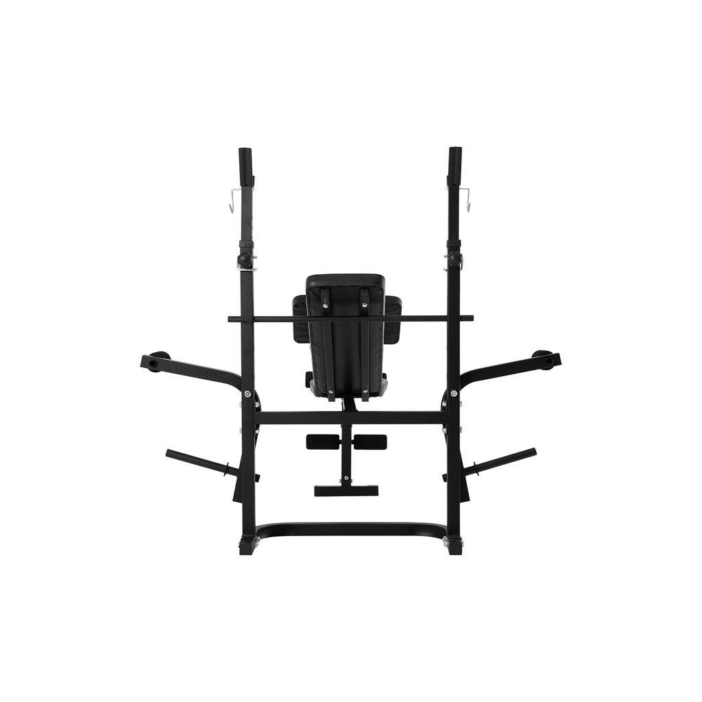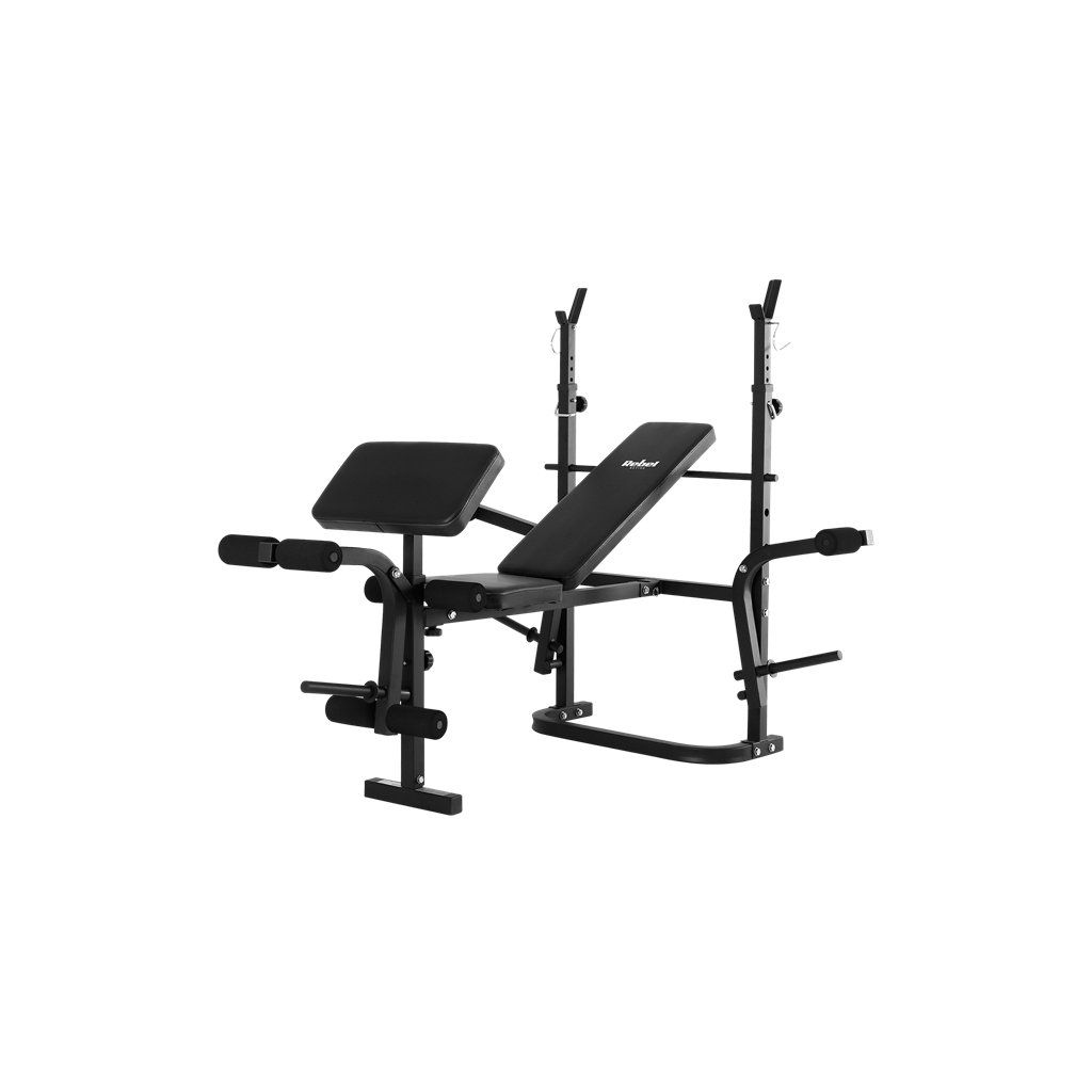 Lavice nabízí 3 polohy nastavení opěrky zad, takže snadno přejdete z klasického benchpressu do skloněné nebo negativní polohy. Stojany na činku s nastavitelnou výškou (110–123 cm) a roztečí 60 cm umožní snadné přizpůsobení podle výšky cvičence a typu cvičení.