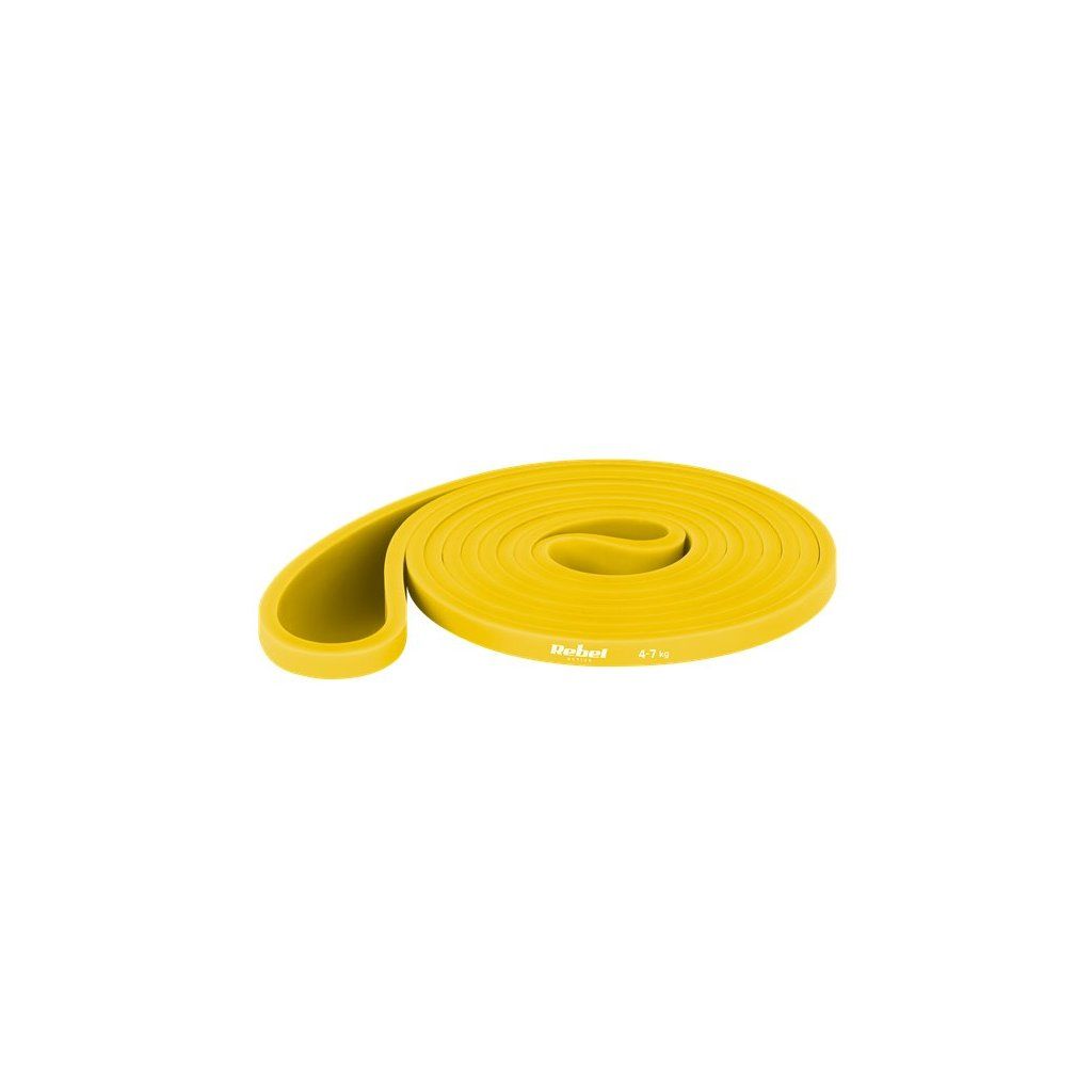 - Žlutý posilovací pás REBEL ACTIVE Power Band (4–7 kg, 6,4 mm)