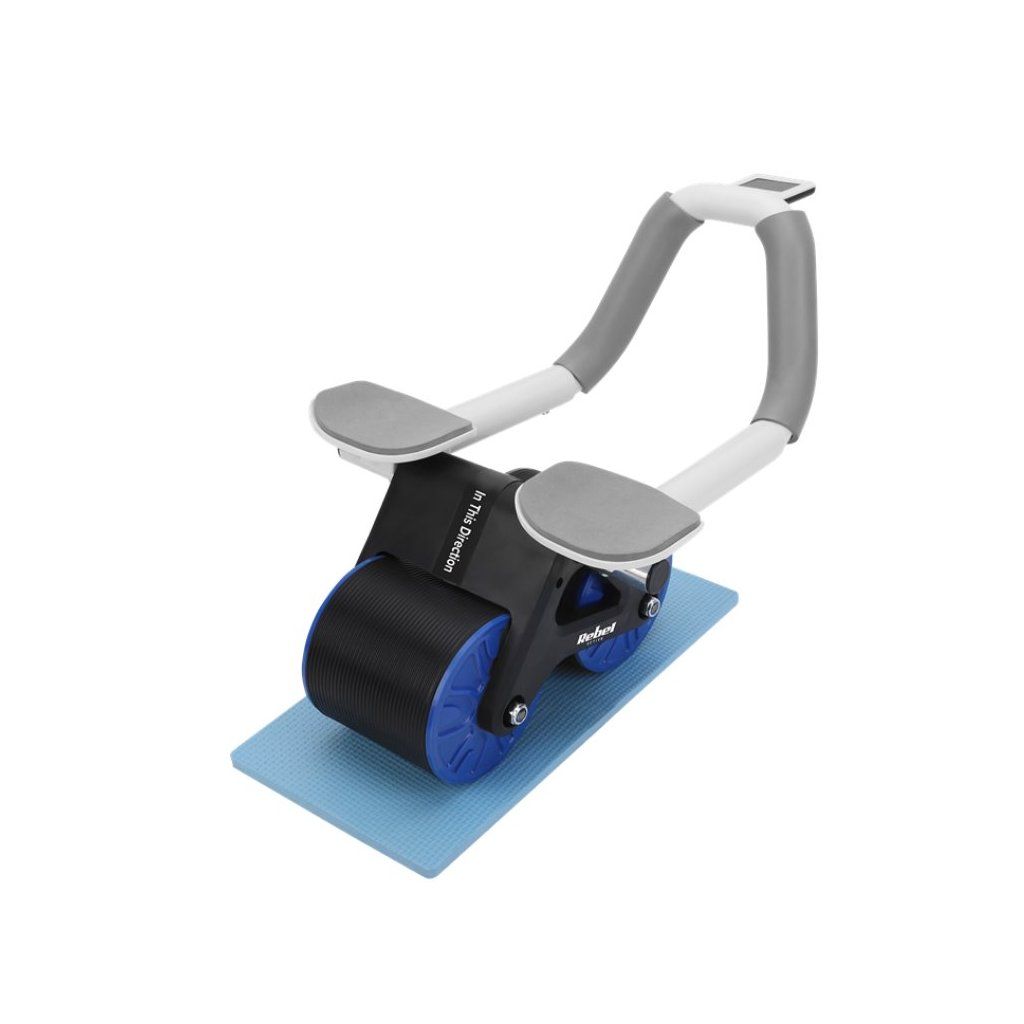 REBEL ACTIVE AB roller Wheel AB-3 RBA-3068-BL je dvojitý cvičební roller určený pro posilování břišních, zádových a ramenních svalů i celého středu těla. Stabilní konstrukce, vestavěný časovač a přehledný LED displej umožňují kontrolované domácí tréninky s důrazem na správnou techniku a bezpečnost. Součástí balení je také měkká podložka pod kolena pro pohodlnější cvičení na tvrdém povrchu.