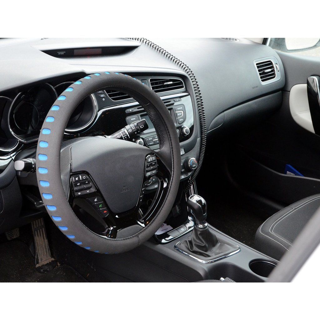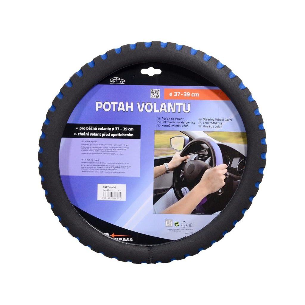 Pěnový potah určený k nasazení na volant o průměru 37-39cm. Příjemný do ruky. Barva černá s modrými prolisy.