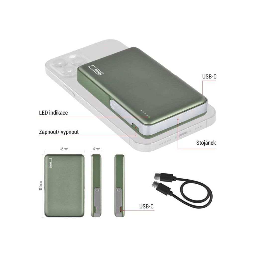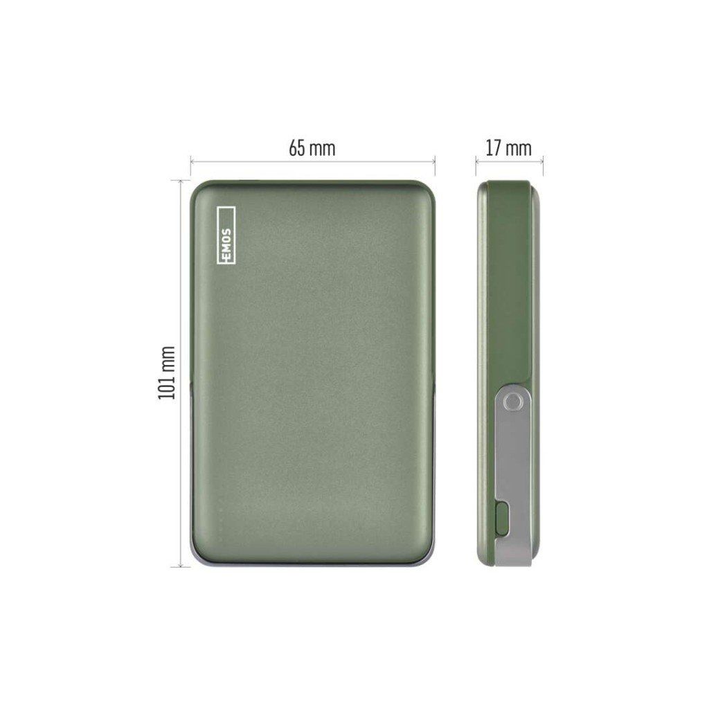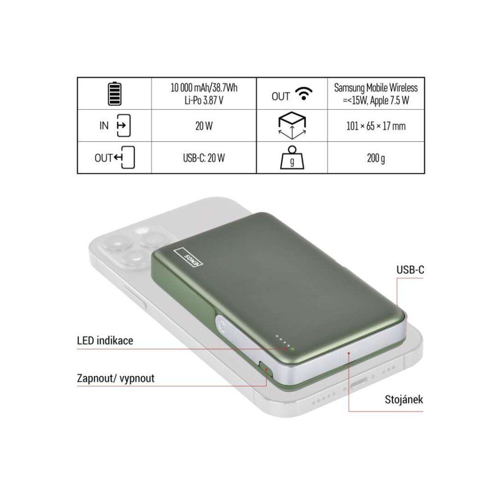 Powerbanka EMOS WI 1031 s kapacitou 10 000 mAh je praktickým pomocníkem pro každodenní i cestovní použití. Díky podpoře rychlého nabíjení až 20 W a bezdrátového nabíjení nabízí flexibilní způsob dobíjení mobilních zařízení. Kompaktní rozměry a elegantní kovové tělo v barvě army-green kombinují odolnost s moderním designem.