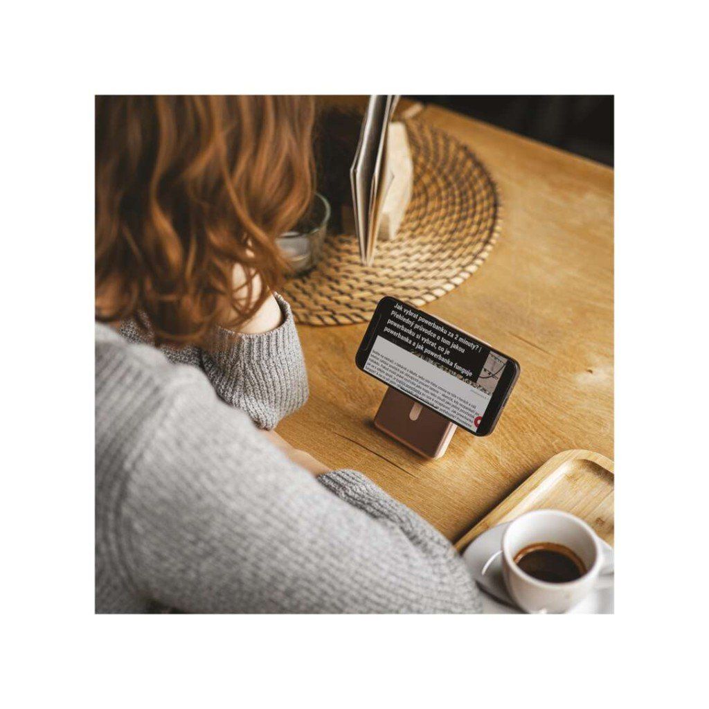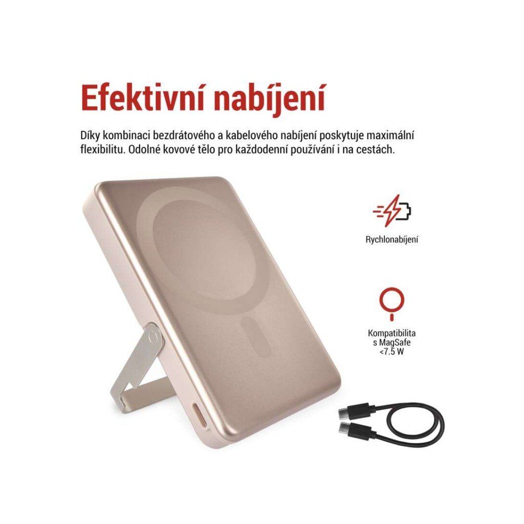 Kompaktní rozměry umožňují snadnou přepravu v kapse nebo tašce, zatímco vestavěný stojánek usnadňuje používání telefonu během nabíjení. Přehledný LED indikátor poskytuje informaci o zbývající kapacitě baterie a zajišťuje tak kontrolu nad stavem powerbanky.