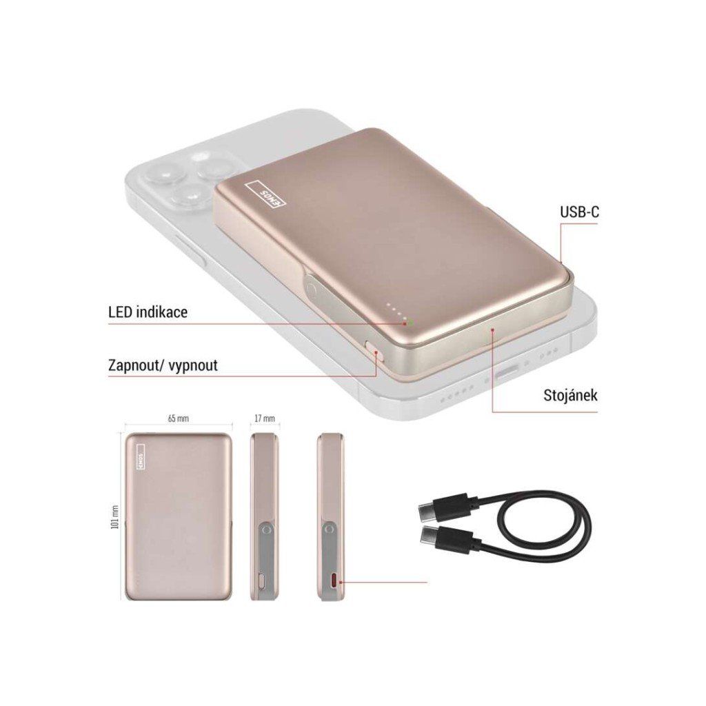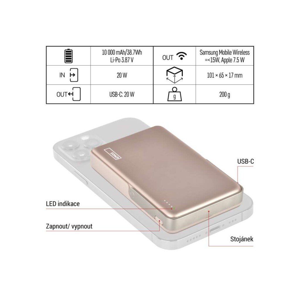 Powerbanka EMOS WI 1031 s kapacitou 10 000 mAh představuje kompaktní a stylové řešení pro nabíjení mobilních zařízení na cestách i v každodenním provozu. Díky podpoře rychlého nabíjení Power Delivery 20 W a integrovanému bezdrátovému nabíjení zajišťuje flexibilní a pohodlné doplnění energie vašich smartphonů, tabletů a dalších kompatibilních zařízení. Elegantní kovové tělo v růžovo-zlatém provedení kombinuje moderní design s vysokou odolností.