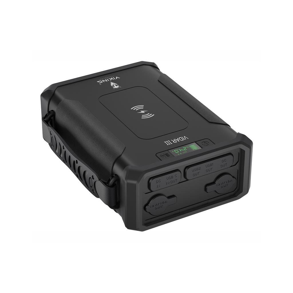 Outdoorová powerbanka Viking VIDAR III je výkonný a odolný záložní zdroj energie navržený pro použití v přírodě, na cestách i v náročných pracovních podmínkách. Díky robustní konstrukci, velké kapacitě a rozmanité nabídce výstupů je ideální pro kempování, práci v terénu i každodenní použití.