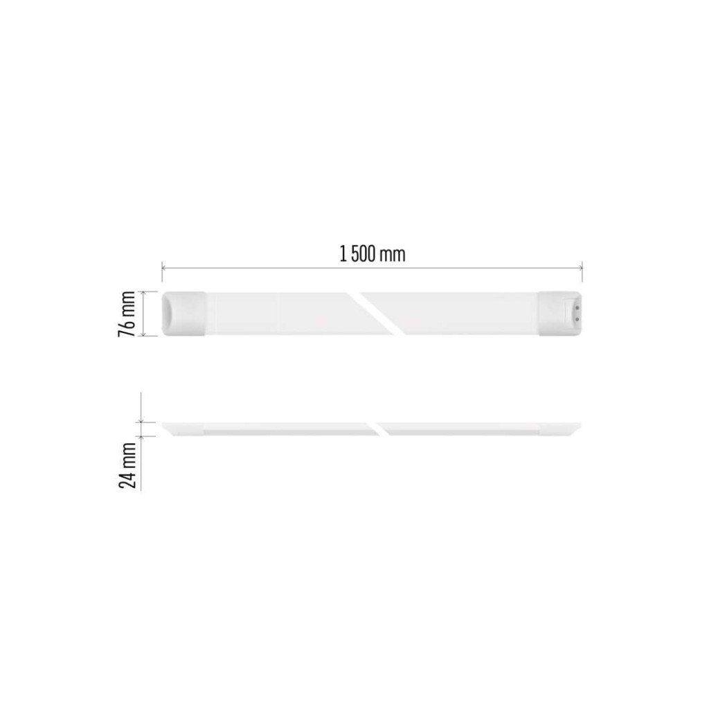 barva světla: neutrální bílá|barva těla: bílá|frekvence: 50/60 Hz|index podání barev (CRI): Ra >80|krytí: IP20|materiál: plast (PC)|materiál difuzoru: plast (PC)|materiál spon: nemá spony|materiál těla: plast (PC)|možnost stmívání: ne|náhrada za žárovku: neuvádí se|napětí: 220–240 V~|příkon: 50 W|prodejní obal: 1 ks, krabice|proud: 225 mA|průběžná montáž: neuvádí se|rozměr: 1 500 × 75,5 × 24,5 mm|rozsah pracovní teploty: -20 °C až +40 °C|stupeň ochrany proti mechanickým nárazům: IK06|světelný tok: 5 500 lm|světelný tok v nouzovém režimu: neuvádí se|teplota chromatičnosti: 4 000 K|třída ochrany: II|typ difuzoru: mléčný|typ montáže: přisazená|typ řízení: neuvádí se|úhel vyzařování: 120°|výdrž baterie: neuvádí se|záruční doba: 2 roky|záruka na baterii: neuvádí se|zdroj světla: LED|životnost: 25 000 hodinDoplňkové parametry