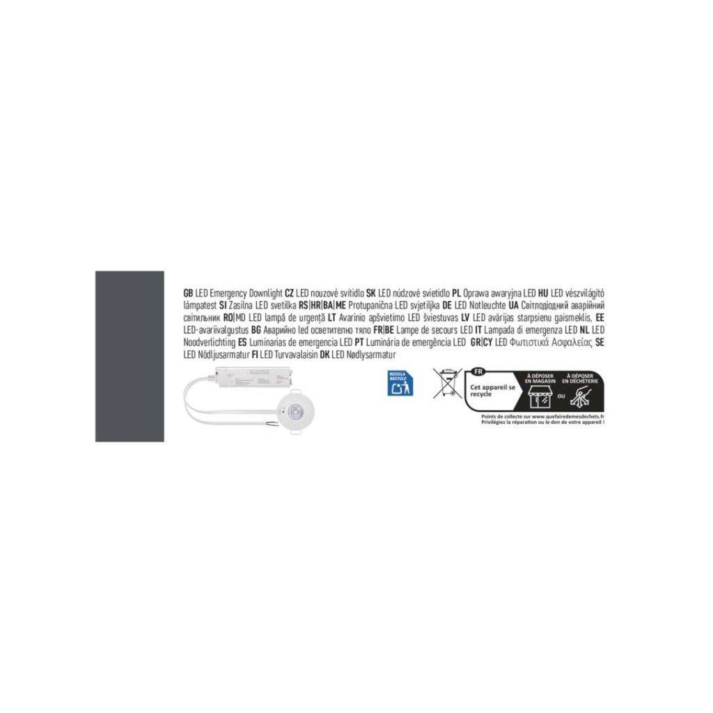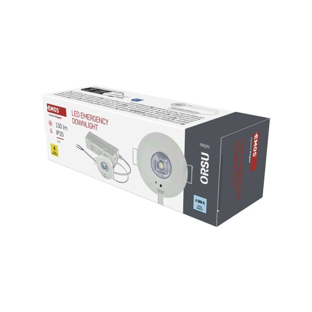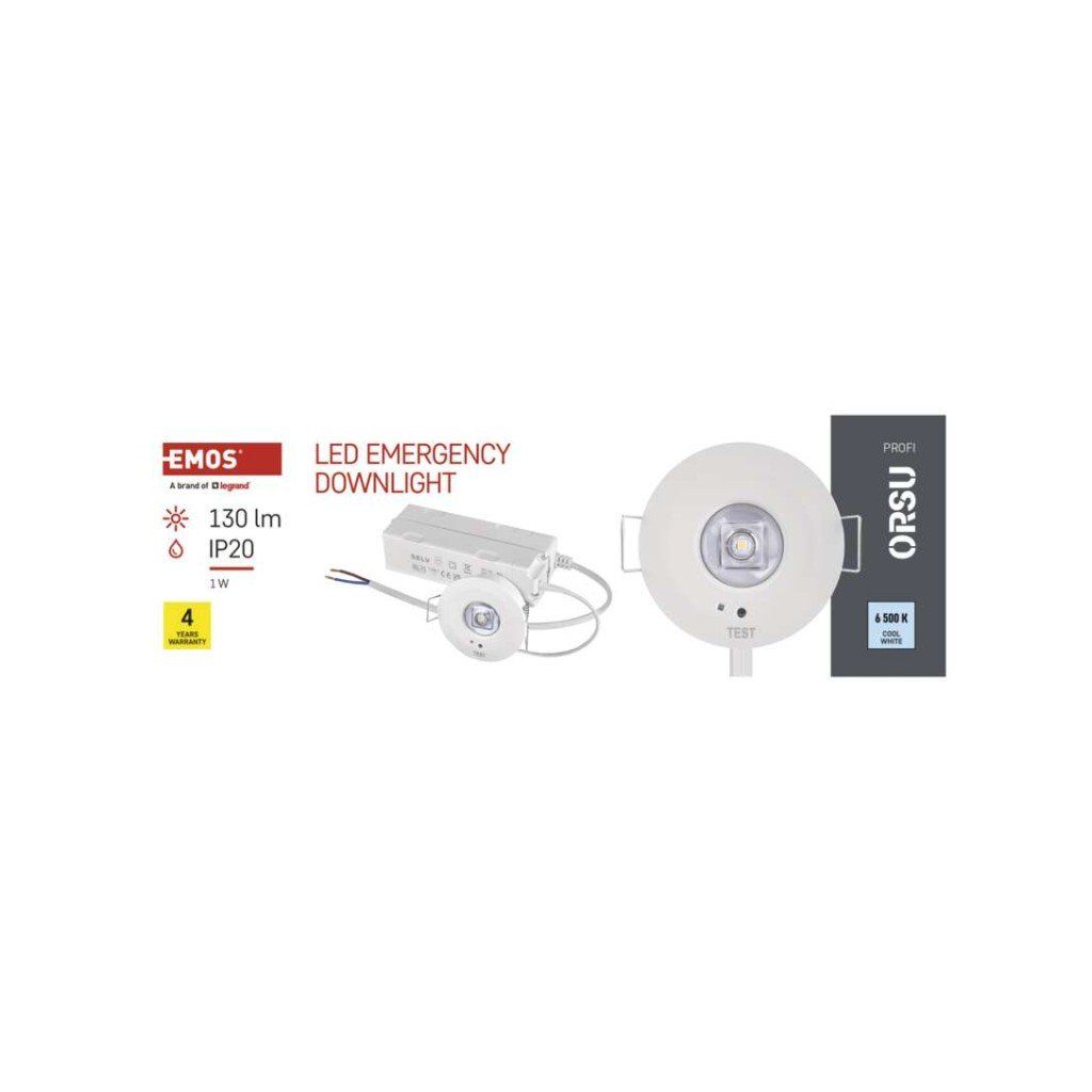 barva světla: studená bílá|barva těla: bílá|délka zálohy: 3 h|doba nabíjení baterie: ? 24 hodin|frekvence napájecího napětí: 50/60 Hz|kapacita baterie: 1 500 mAh|kontrolní vybavení: autotest|krytí: IP20|materiál difuzoru: –|materiál těla: plast (PC)|napájecí napětí: 220–240 V AC|pozorovací vzdálenost: –|příkon na vstupu: 1 W|prodejní obal: 1 ks, krabice|provozní režim: pohotovostní|rozměr: průměr 50 × 17 mm|rozsah pracovních teplot: 0 °C až +45 °C|stupeň ochrany proti mechanickým nárazům: –|světelný tok: 130 lm|teplota chromatičnosti: 6 500 K|třída ochrany: II|typ baterie: LiFePo4|typ montáže: vestavná|účiník: >0,5|vstupní proud: 75 mA|výstupní napětí: –|výstupní napětí v nouzovém režimu: –|výstupní výkon v nouzovém stavu: 1 W|záruční doba: 4 roky|záruka na baterii: 2 roky|zdroj světla: LEDDoplňkové parametry