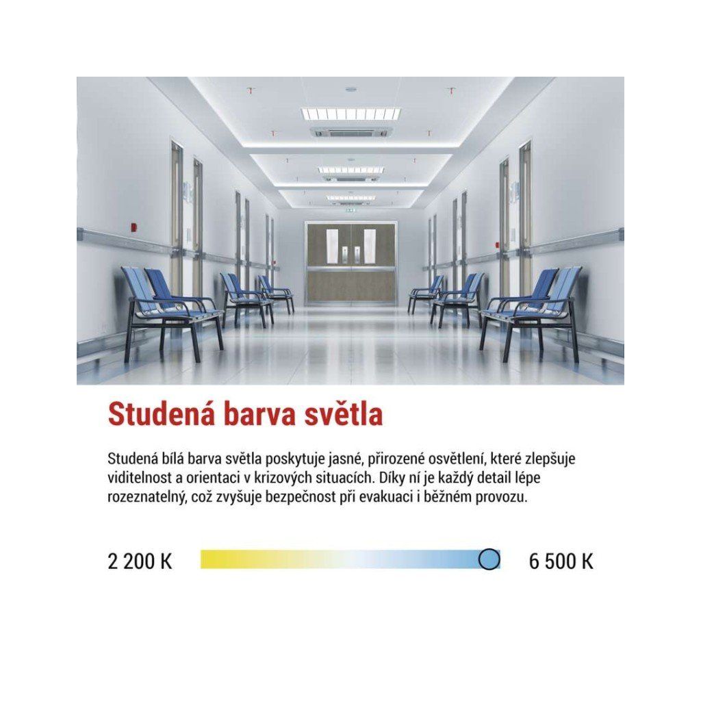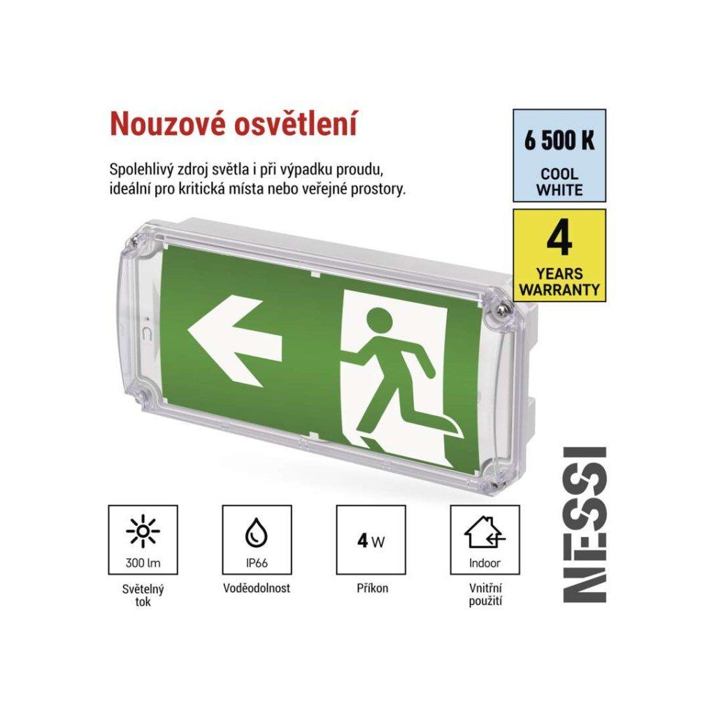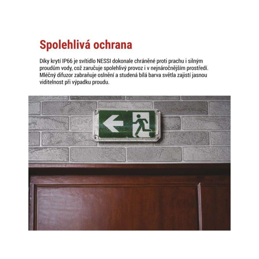 barva světla: studená bílá|barva těla: bílá|délka zálohy: 3 h|doba nabíjení baterie: ? 24 hodin|frekvence napájecího napětí: 50/60 Hz|kapacita baterie: 3 000 mAh|kontrolní vybavení: autotest|krytí: IP66|materiál difuzoru: plast (PC)|materiál těla: plast (PC)|napájecí napětí: 220–240 V AC|pozorovací vzdálenost: –|příkon na vstupu: 4 W max.|prodejní obal: 1 ks, krabice|provozní režim: trvalý/pohotovostní|rozměr: 252 × 123 × 65 mm|rozsah pracovních teplot: 0 °C až +45 °C|stupeň ochrany proti mechanickým nárazům: IK10|světelný tok: 300 lm|teplota chromatičnosti: 6 500 K|třída ochrany: II|typ baterie: LiFePo4|typ montáže: přisazená|účiník: >0,5|vstupní proud: 75 mA|výstupní napětí: neuvádí se|výstupní napětí v nouzovém režimu: neuvádí se|výstupní výkon v nouzovém stavu: 2,2 W|záruční doba: 4 roky|záruka na baterii: 2 roky|zdroj světla: LEDDoplňkové parametry