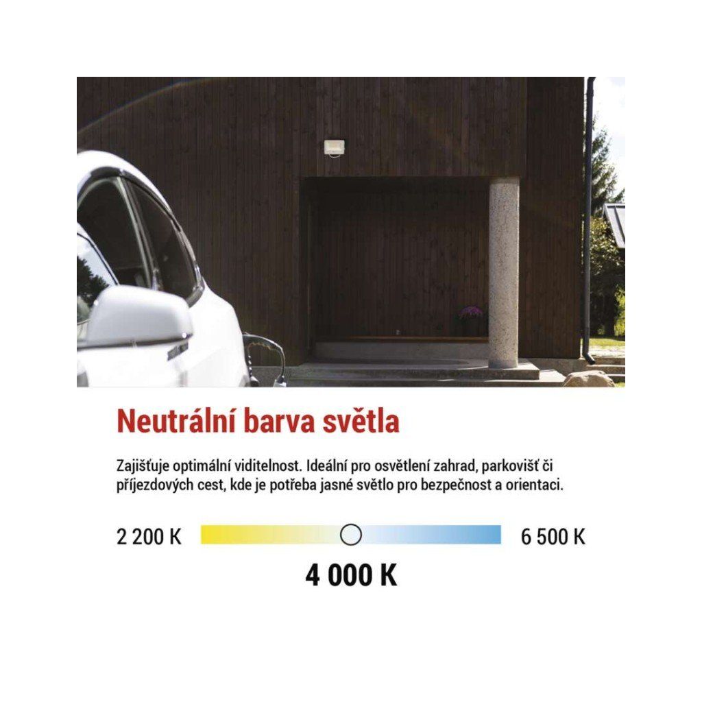 - Teplota chromatičnosti: 4 000 K (neutrální bílá)