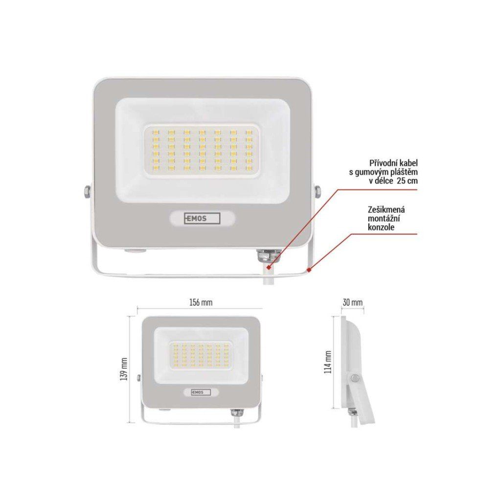 LED reflektor GLARO 30W, bílý – venkovní LED reflektor