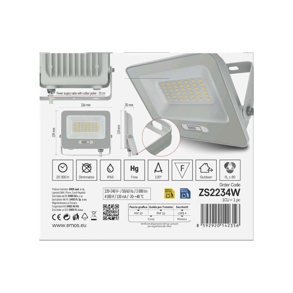 - Výkon a světelný tok: Příkon 30 W a světelný tok 3 000 lm poskytují vysoký jas při nízké spotřebě energie.