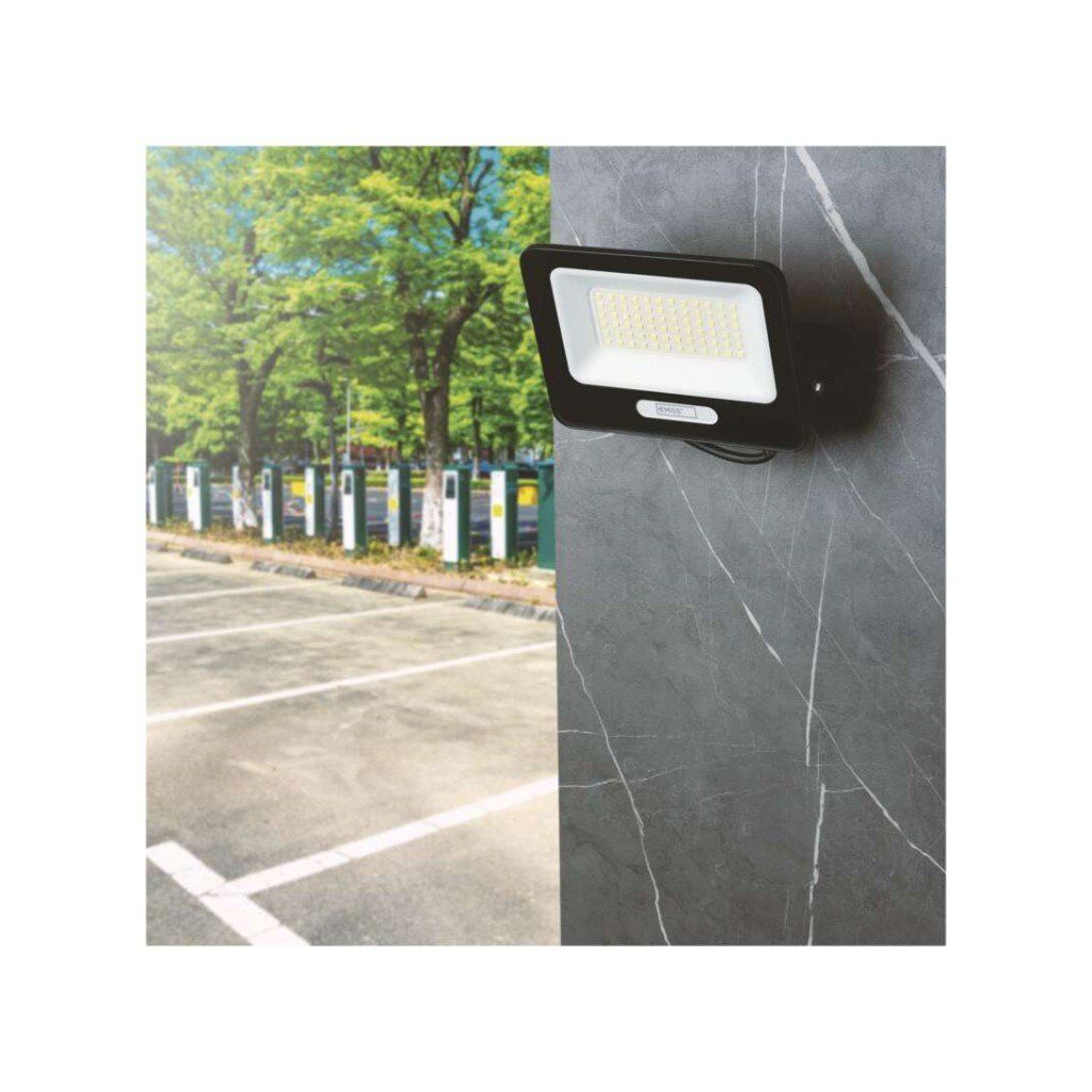 - Výkon: 50 W zajišťuje vysoký světelný výkon vhodný pro osvětlení vchodů, teras, garáží i menších komerčních ploch.