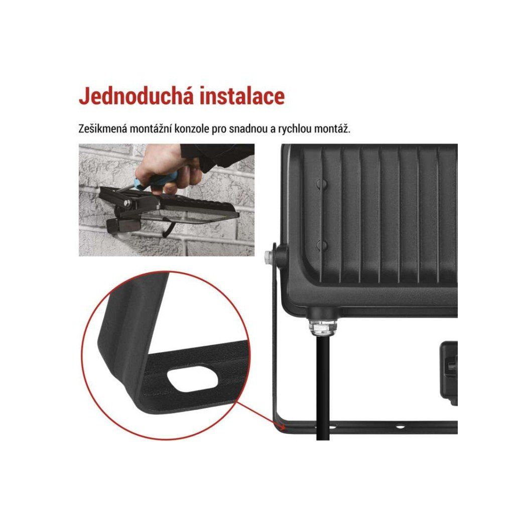 - PIR senzor: Integrovaný senzor detekuje pohyb a automaticky zapíná reflektor, což zvyšuje bezpečnost a snižuje spotřebu energie.