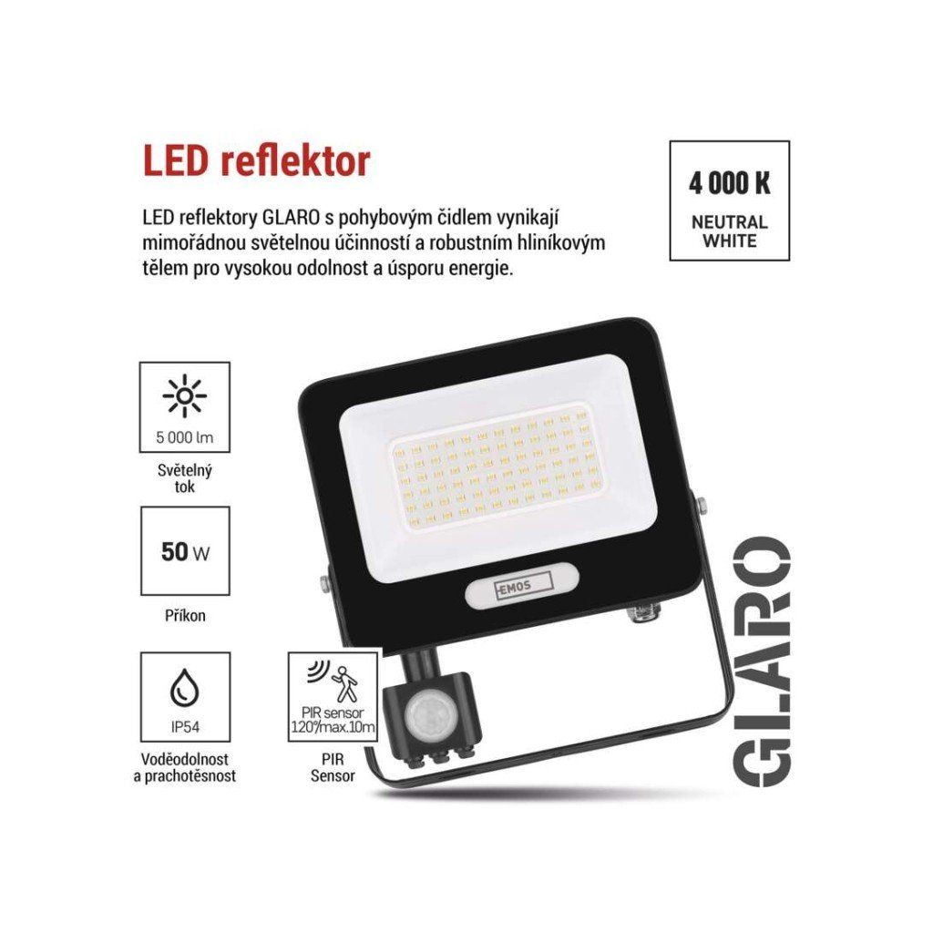 GLARO LED reflektor s PIR senzorem, 50 W – venkovní reflektor