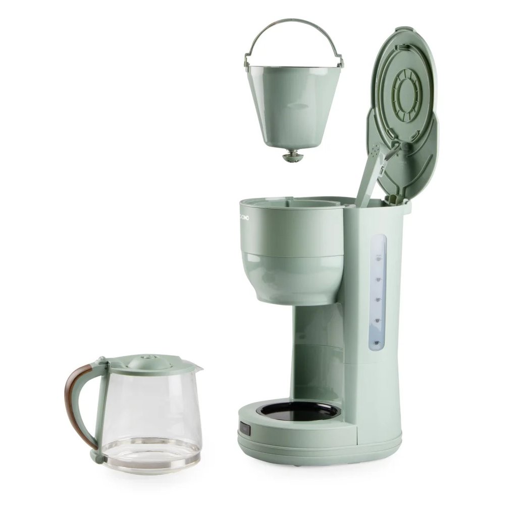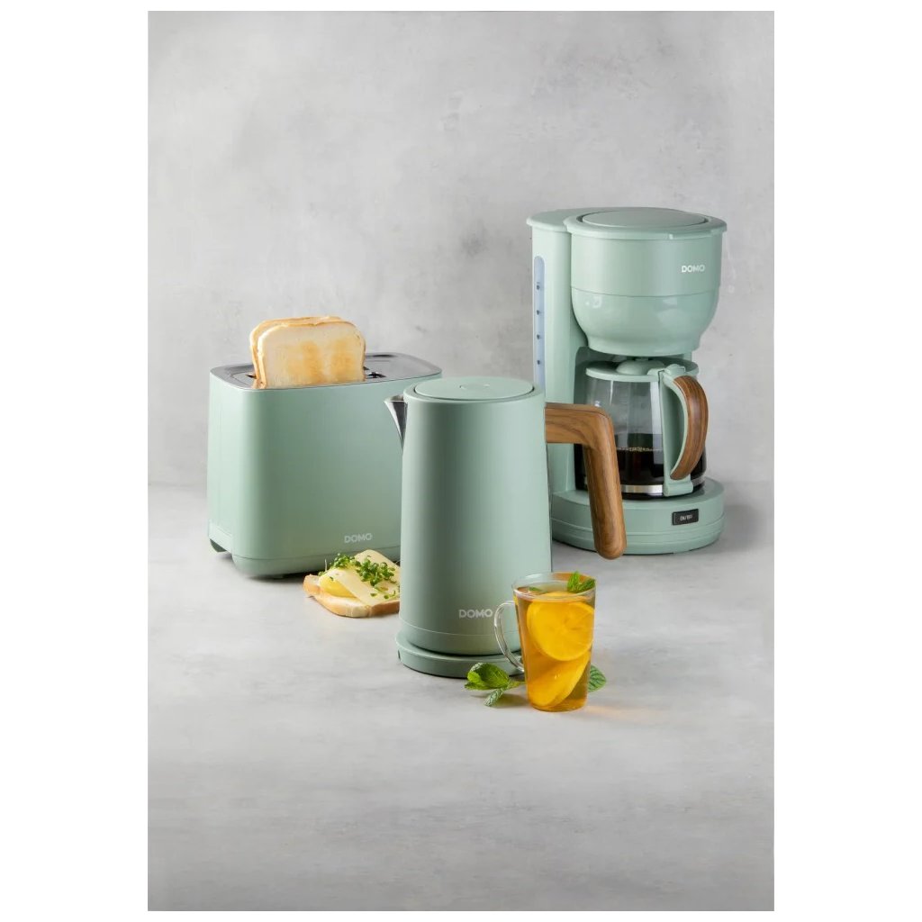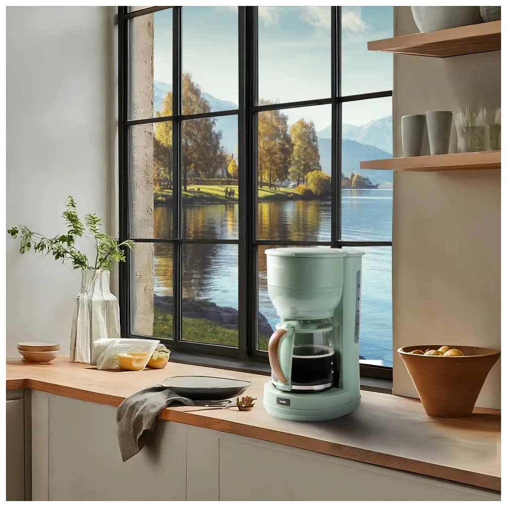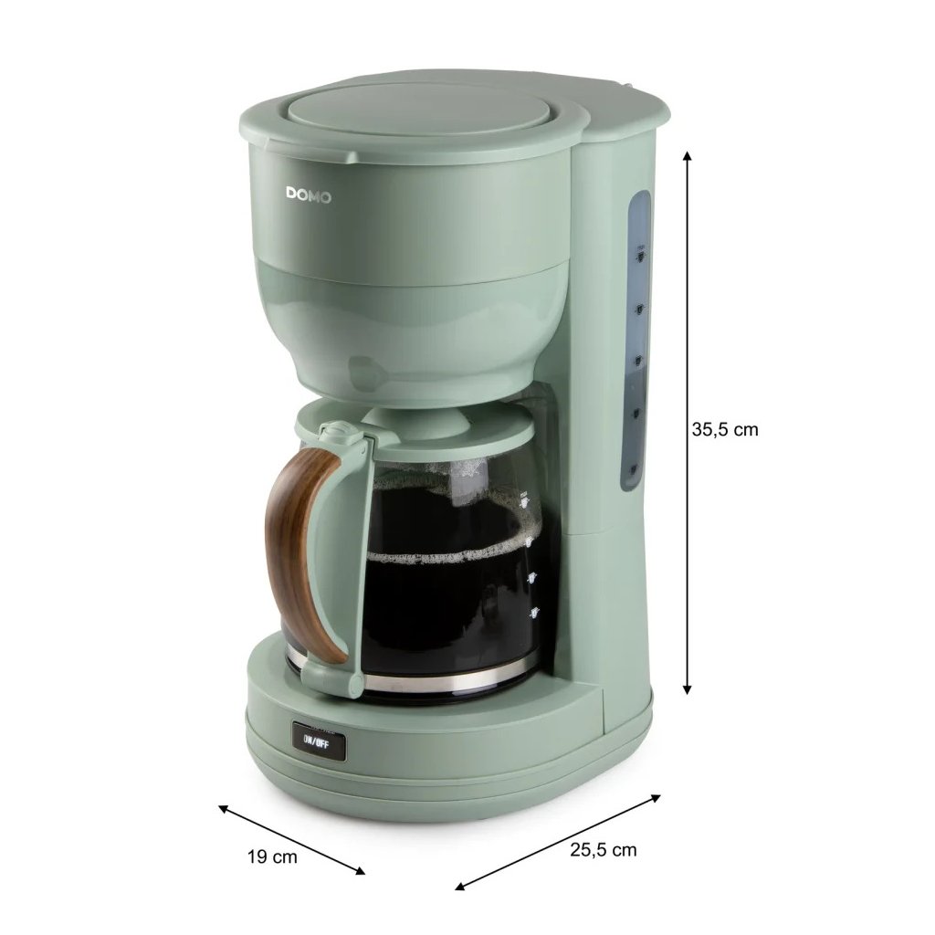 Překapávač na kávu WOOD YOU - DOMO DO755K je určený pro přípravu filtrované kávy nebo čaje v domácím prostředí. Nabízí jednoduché ovládání jedním tlačítkem, skleněnou konvici s ukazatelem hladiny a design v matné zelené barvě s madlem ve vzhledu dřeva. Přístroj kombinuje základní funkce pro každodenní používání s bezpečnostními prvky a funkcí udržení teploty.