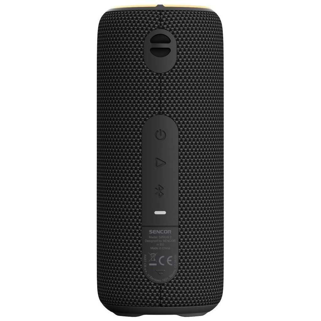 Bezdrátový reproduktor Sencor Sirius 2 Black Stupeň krytí IPX7 Kryt reproduktoru z prémiové tkaniny Funkce TWS LED osvětlení reproduktoru Až 6 hodin přehrávání (při 50% hlasitosti) Maximální výkon reproduktoru 20 W Impedance: 4 ? 2 reproduktory + 2 pasivní zářiče Frekvenční odezva: 60 Hz – 20 kHz Celkové harmonické zkreslení: ? 1 % Bluetooth Audio 5.0 Audio vstup Aux - 3,5mm stereo konektor Slot pro TF kartu Funkce handsfree Vestavěná dobíjecí baterie 3600 mAh Li-Ion Doba přehrávání až 7 hodin (při 50% hlasitosti) Nabíjení z USB-C Doba nabíjení max. 3 hodiny Příslušenství: USB nabíjecí kabel Uživatelská příručka Rozměry: 189 x 78 x 80 mm Hmotnost: 547 g Barva černáDoplňkové parametry