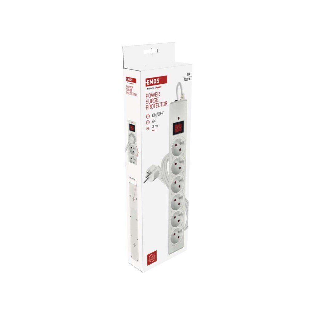 EMOS P54016 – přepěťová ochrana (6 zásuvek, 3 m)