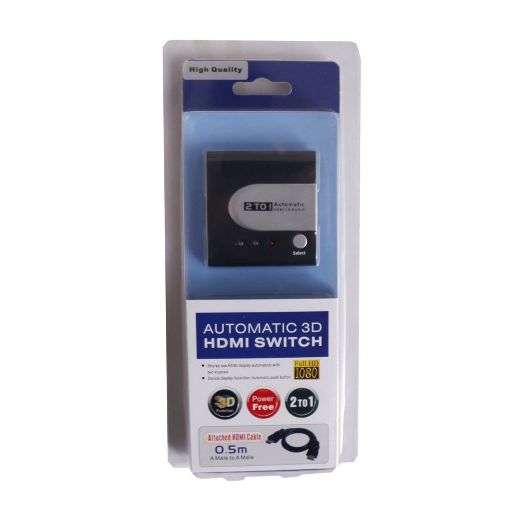 HDMI Switch 2 ->1 automatický 2 HDMI zařízení sdílejí 1 HDMI zařízení (obrazovku). Výběr zařízení je buď automaticky nebo tlačítkem. Podpora 20m HDMI kabelu na vstupu, až 25m HDMI kabelu na výstupu HDMI Switche. Přepínač automaticky přepne na poslední zapnutý vstup videosignálu HDMI, v případě, že jsou aktivní oba vstupní signály HDMI, je možno přepnout na požadovaný tlačítkem na tělě přepínače. - Podpora 3D - HDMI rolišení 480i, 480p, 720i, 720p,1080i a 1080p - Podpora modů VGA,SVGA,XGA,UXGA mode - HDMI 1.3b - 8bit,10bit,a 12bit barevná hloubka na kanál - Výběr vstupu tlačítkem / automaticky. - Plug-and-play, není třeba software. - HDCP kompatibilní V balení: 1x HDMI switch 1x 0.5m propojovací HDMI kabelDoplňkové parametry