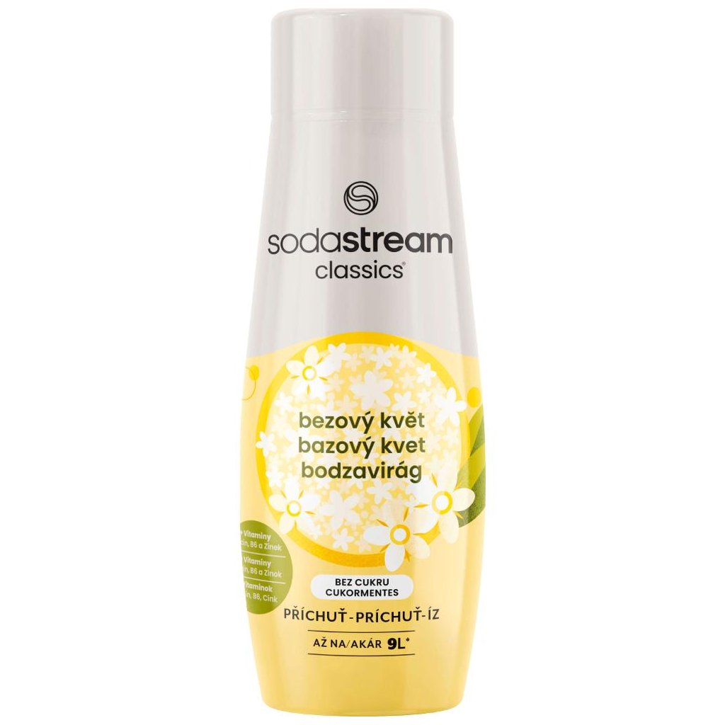 Příchuť Sodastream Bezinka Zero 440 ml Objevte jemnou chuť květů bezu v moderním a osvěžujícím provedení. Příchuť Bezinka Zero přináší lehkou a přirozenou chuť, kterou si zamilují nejen milovníci zdravého životního stylu. Neobsahuje cukr a je obohacena o vitamíny B3, B6 a zinek – ideální kombinace pro podporu vaší imunity a snížení únavy. Ochucený nápojový koncentrát si nařeďte nejlépe v doporučeném poměru 1:19. Pomůže vám k tomu odměrka ve víčku – jedna dávka na velkou láhev SodaStream. Ze 440 ml příchutě vyrobíte devět litrů osvěžujícího nápoje.Doplňkové parametry