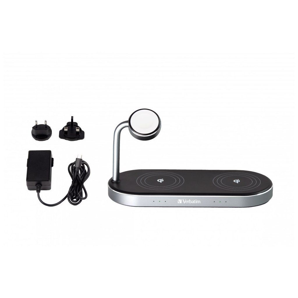 - Duální hliníková bezdrátová nabíječka 3 v 1 Verbatim WCS-03 Qi MFi + Apple Watch