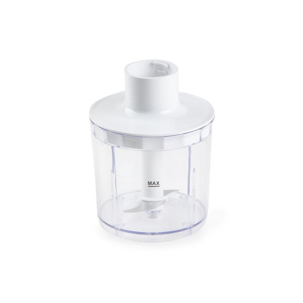 Náhradní nádoba určená pro sekáček potravin DOMO DO1089M. Slouží jako kompletní výměnný díl včetně nože a víka pro základní funkce sekání a drcení potravin.