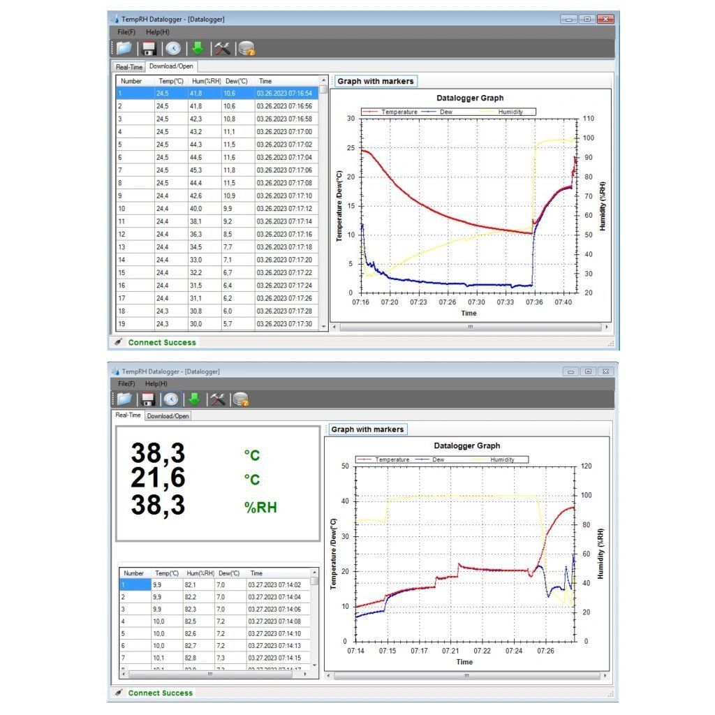 - software TempRH Datalogger V2.6 pro zobrazení naměřených hodnot, pro stahování dat, nastavení dataloggeru tvorbu grafů