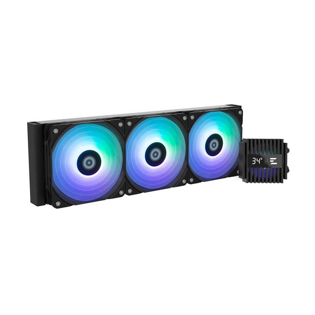 Vodní chladič určený pro chlazení široké škály procesorů. Vyznačuje se vysokou kvalitou, výkonem a spolehlivostí. Disponuje třemi 120 mm velkými ventilátory s ARGB podsvícením. Odolné opletené hadice zaručují díky dostatečně širokému průměru plynulý průtok chladicí kapaliny. Chladič je dodáván se speciální teplovodivou pastou ZM-STC10 pro maximální odvod generovaného tepla.