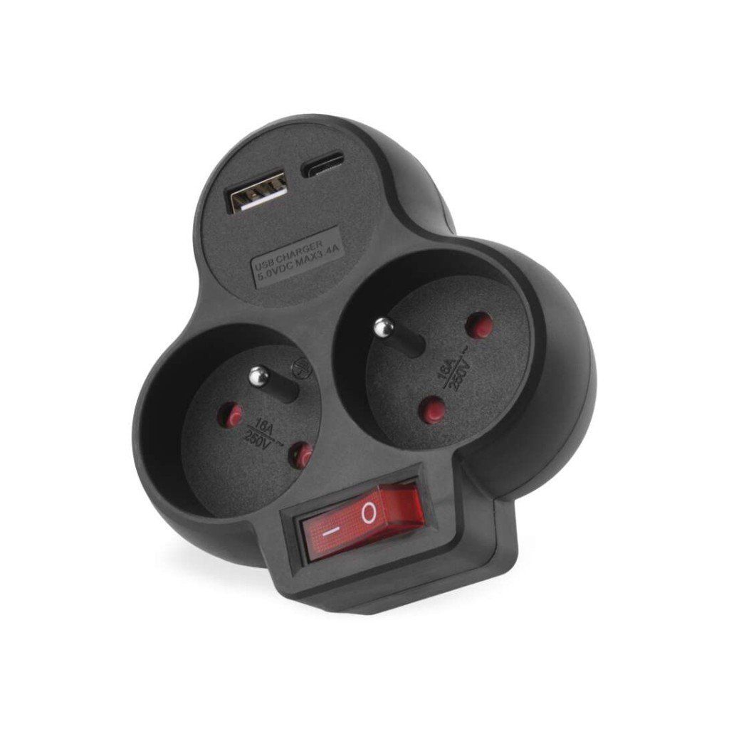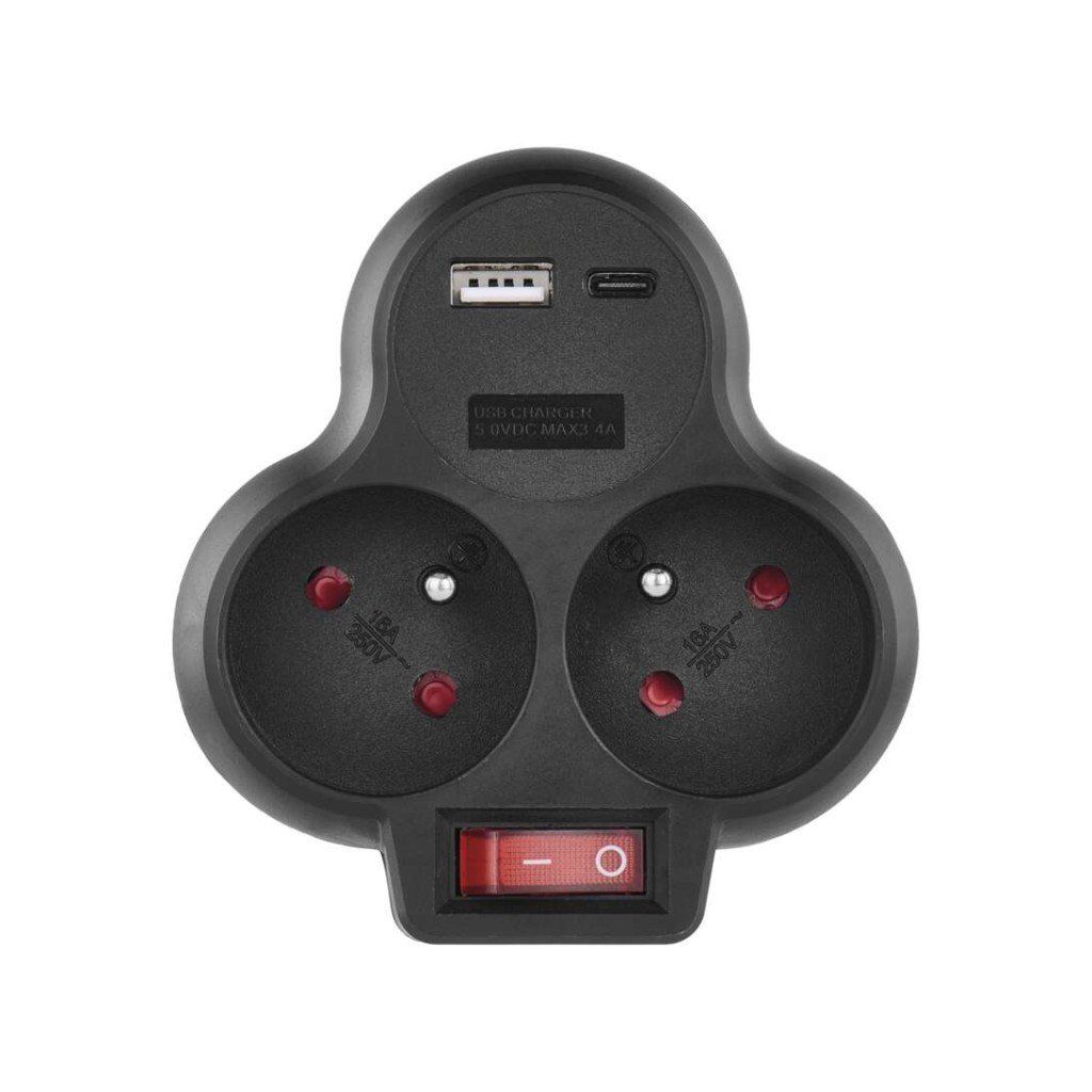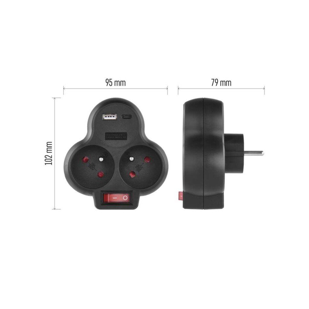 - Rozbočovací zásuvka EMOS 2× s USB-A+USB-C