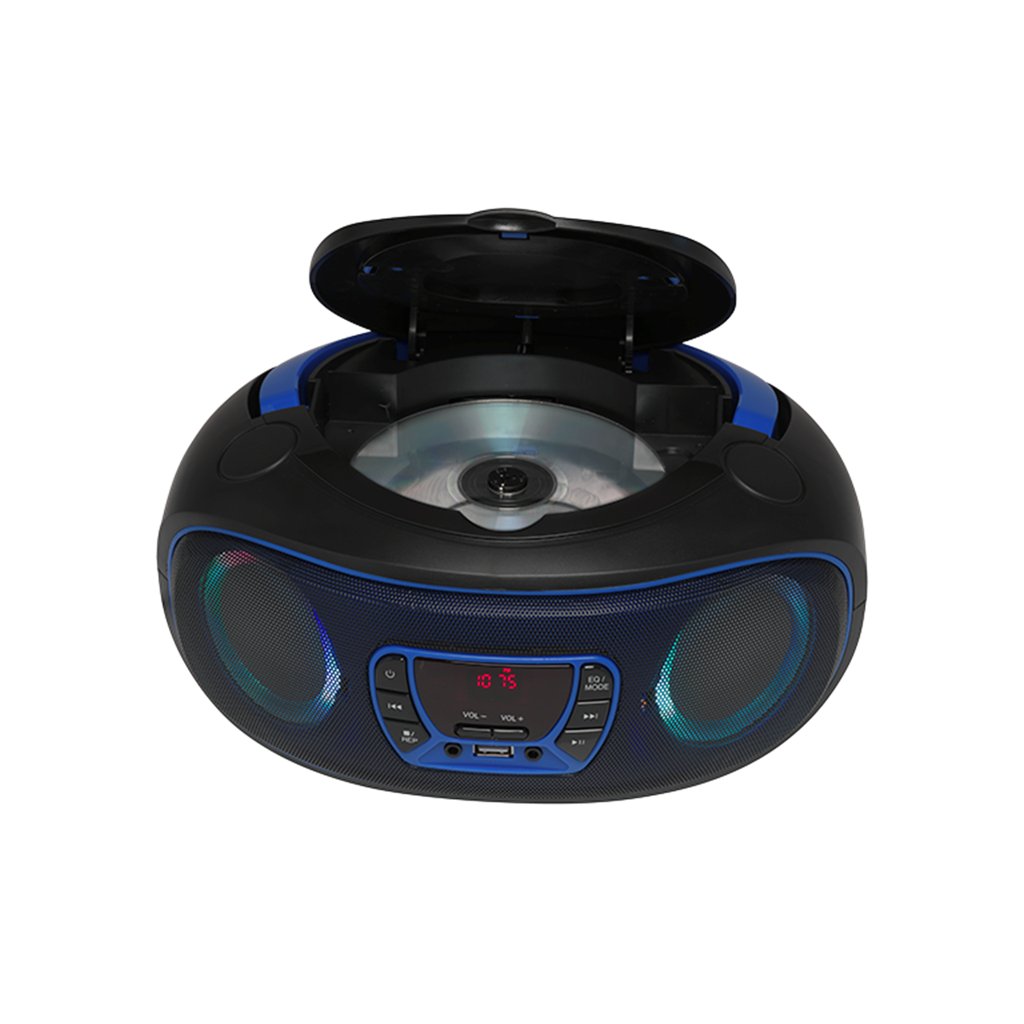 Denver TCL-212BT je moderní přenosný Bluetooth boombox kombinující klasický CD přehrávač s pokročilými funkcemi digitálního FM rádia a možností přehrávání hudby z různých zdrojů. Tento multifunkční hudební systém nabízí nejen kvalitní zvuk, ale také atraktivní LED osvětlení kolem reproduktorů, které vytvoří skvělou atmosféru při poslechu vaší oblíbené hudby. Díky kompaktním rozměrům a možnosti napájení jak ze sítě, tak z baterií, je ideálním společníkem na cesty, na zahradní párty nebo do dětského pokoje.