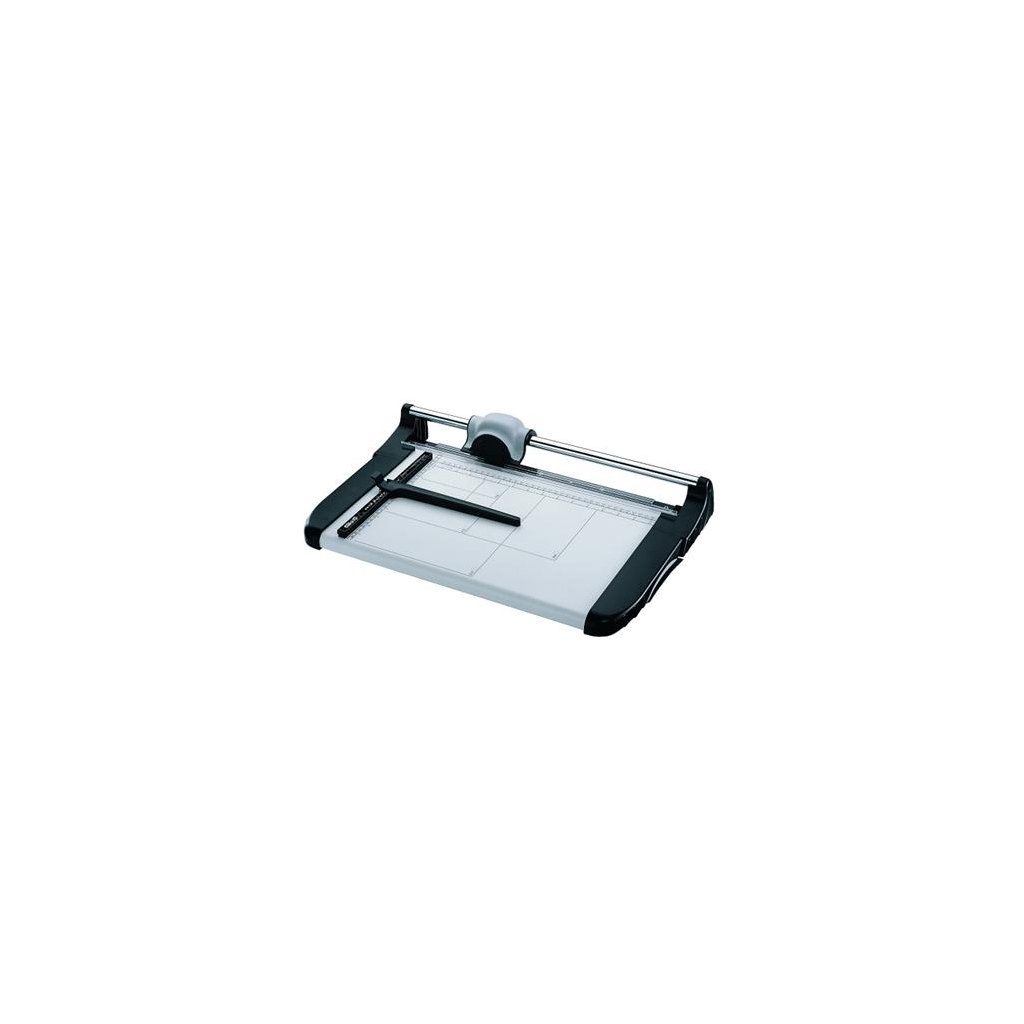 Kvalitní kolečková řezačka s pevnou kovovou základnou a řeznou hlavou umístěnou na kovové tyči, určena pro formát A4. Pracovní stůl je vybaven natištěnými měřítky a posuvnou zarážkou souběžnou s přímkou řezu. Díky rotačnímu noži z tvrzené nerezové oceli jsou řezačky KW Trio vhodné pro řezání i více listů nebo archů. K dispozici je náhradní řezné kolečko nebo celá řezná hlava.