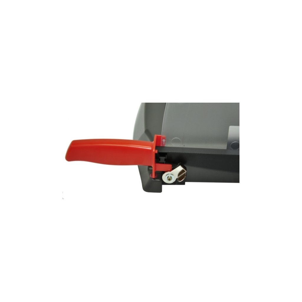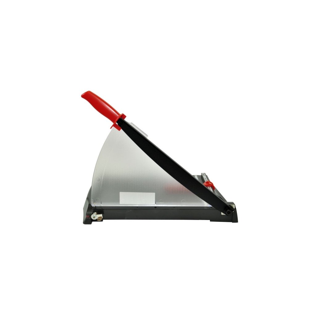 Páková řezačka, vhodná pro řez papíru do formátu A4, má maximální délku řezu 343 mm a kapacitu až 10 listů papíru najednou. Stabilitu zařízení při práci zajistí široká a pevná základna. Rozměr stolu: 337 x 473 mm. S vyznačenými měřítky a DIN formáty. Posuvný doraz papíru. Plastový ochranný kryt. Řezačka je ideální pro využití v kanceláři i domácnosti.