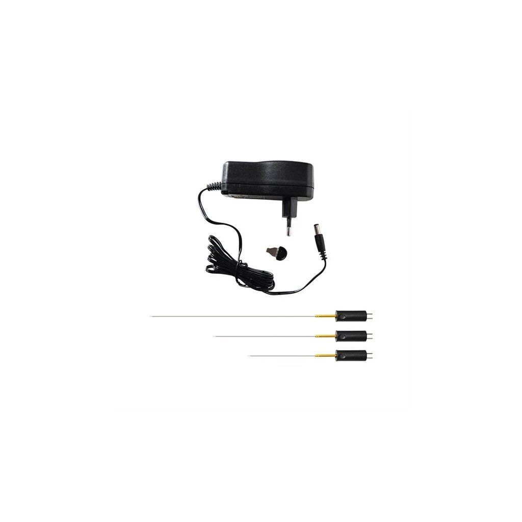 - Napájení: Napájecí adaptér (vstupní napětí 100–230 V AC / 50 Hz, výstupní napětí 3–12 V, nastavitelné)