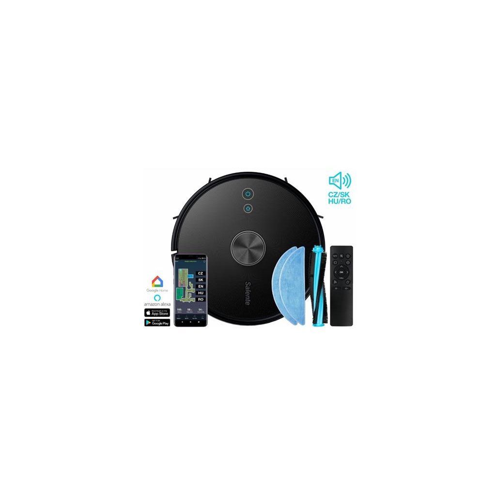 Aplikace Salente umožňuje ovládat vysavač mobilním telefonem nebo tabletem na dálku. Informuje vás o aktuálním stavu vysavače, můžete spustit různé režimy úklidu nebo nastavit úrovně vysávání nebo vytírání. Aplikace je v českém jazyce a je určena pro operační systémy Android a iOS. Pokud nejste fanouškem mobilních aplikací, můžete vysavač ovládat i pomocí přiloženého dálkového ovladače nebo tlačítky na vysavači.